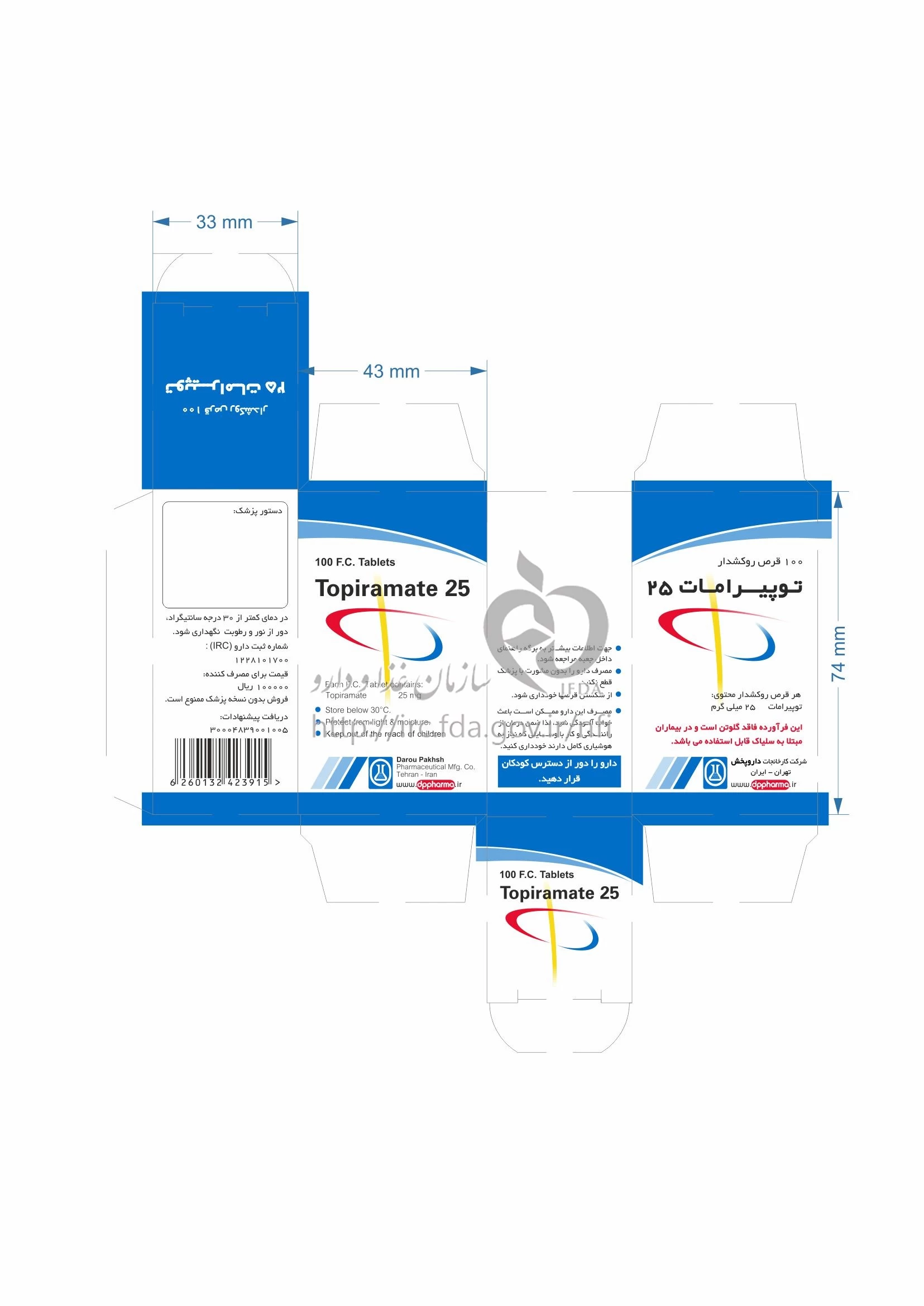 توپیرامات قرص خوراکی 25 mg