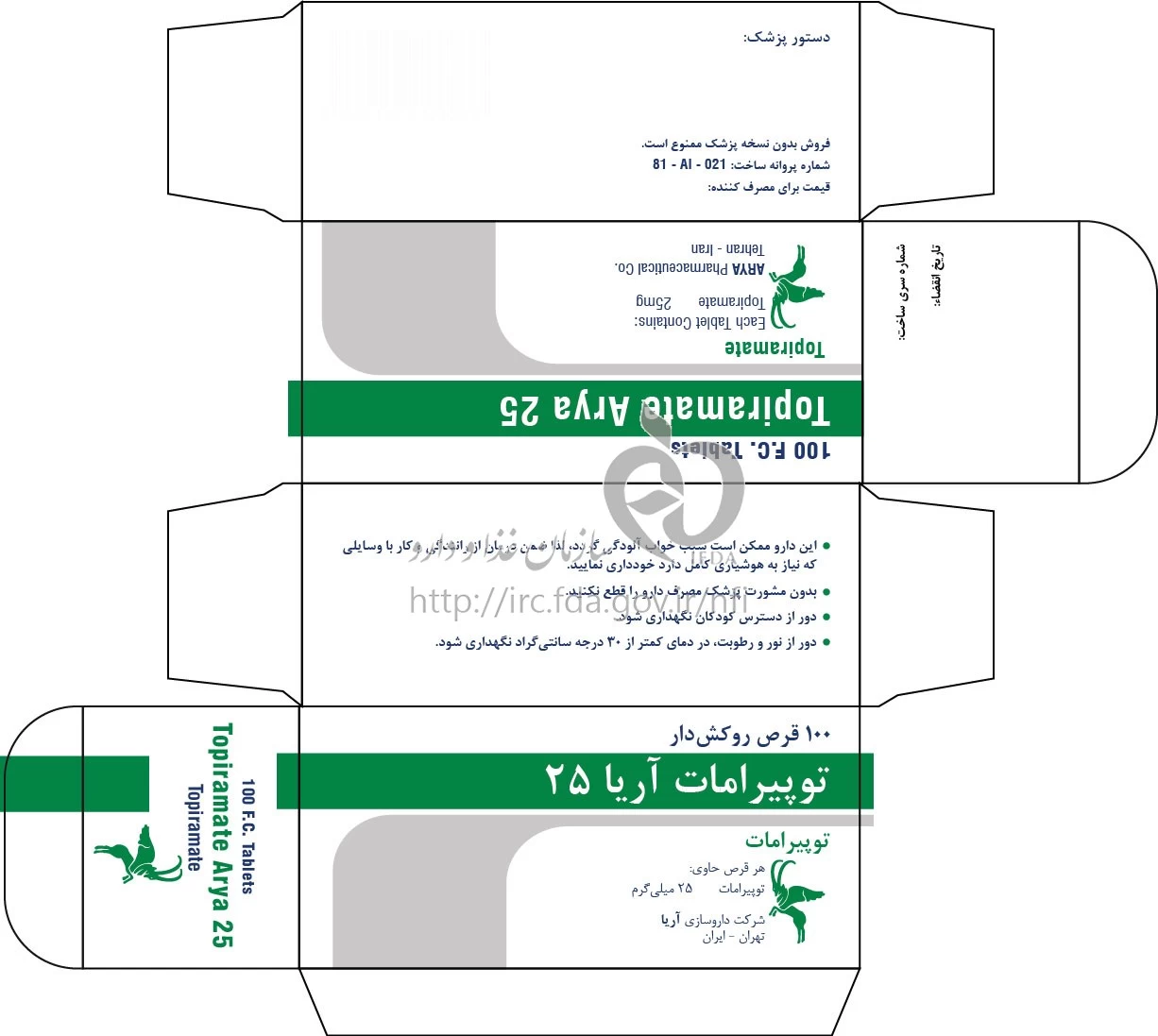 موارد مصرف توپیرامات آریا قرص خوراکی 25 mg