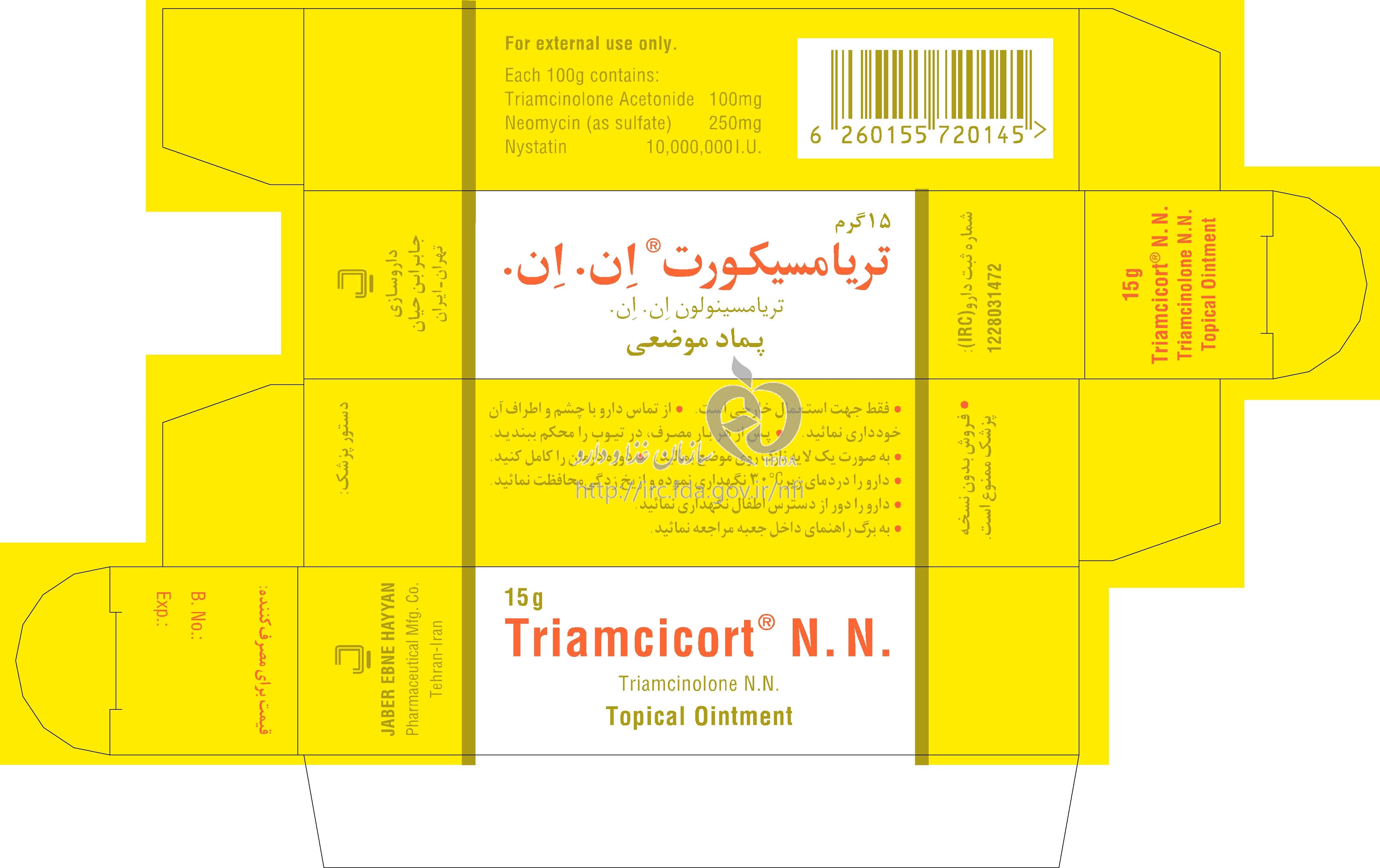 تریامسیکورت ان ان پماد موضعی 1 mg/2.5 mg/100000 [iU]/1g 15GRAM