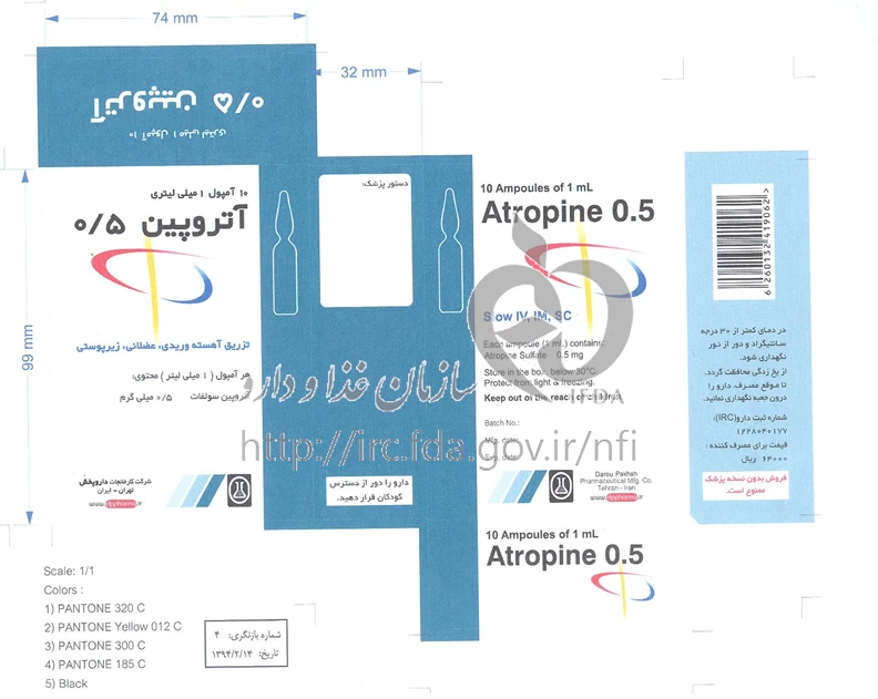 آتروپین تزریقی پرنترال 0.5 mg/1mL