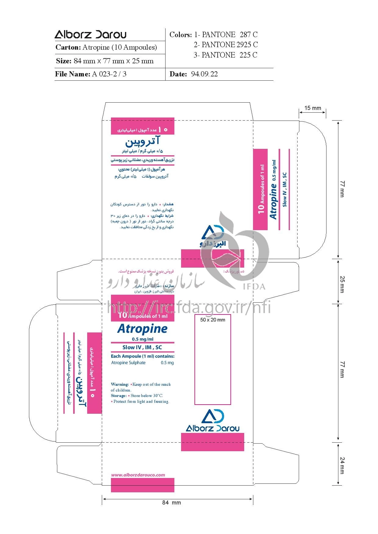 آتروپین تزریقی پرنترال 0.5 mg/1mL