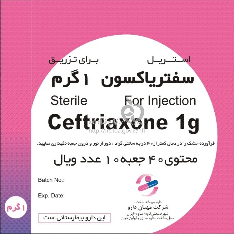 سفترياكسون يك سفالوسپورين نسل سوم است كه در درمان عفونت هاي باكتريايي حساس از جمله شانكروئيد، آندوكارديت، سالمونلوز، شيگلوز، سوزاك، مننژيت (درمان و پيشگيري از مننژيت مننگوكوكي)، سپتي سمي و حصبه و قبل از اعمال جراحي به منظور پيشگيري از عفونت مصرف می شود.