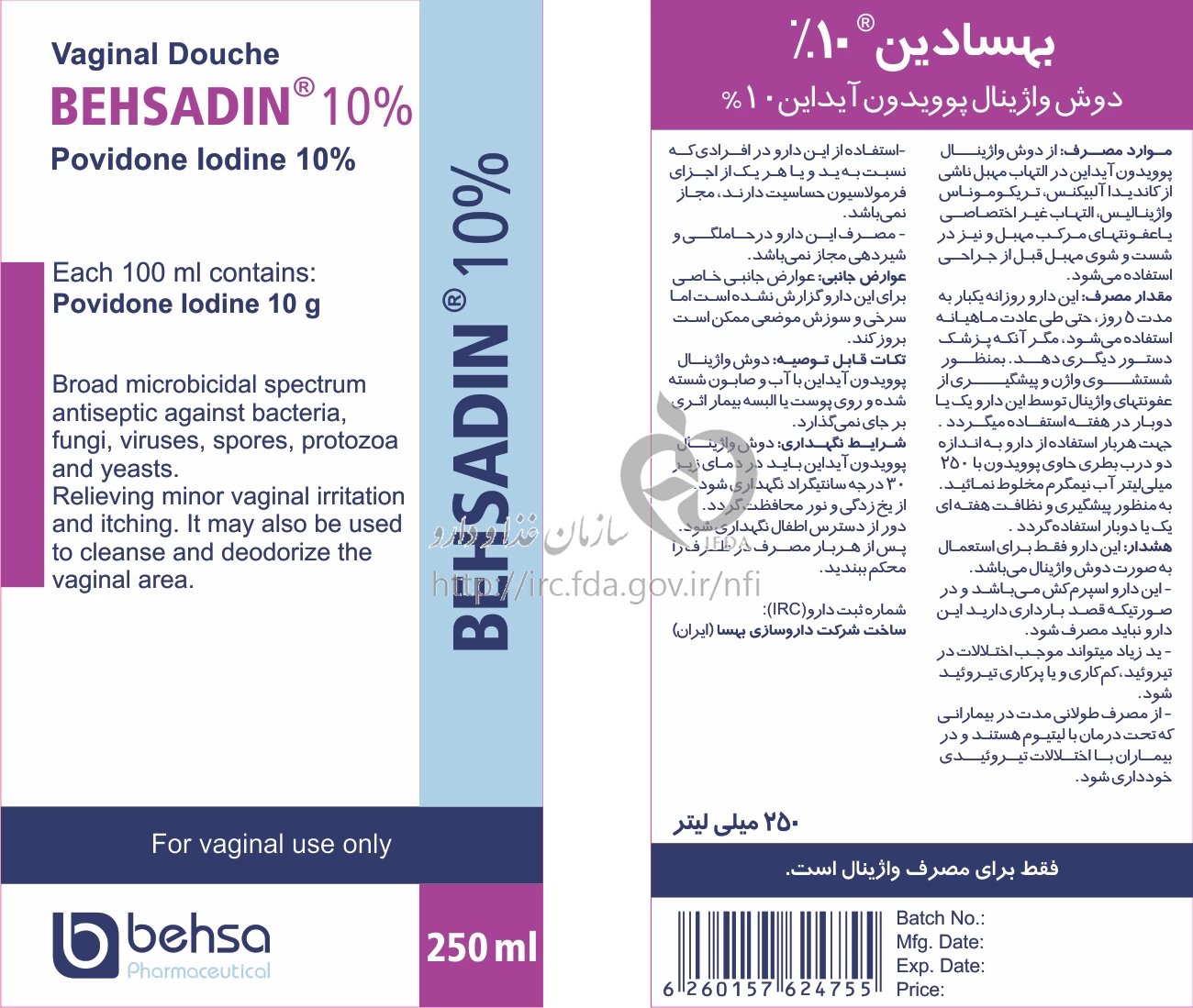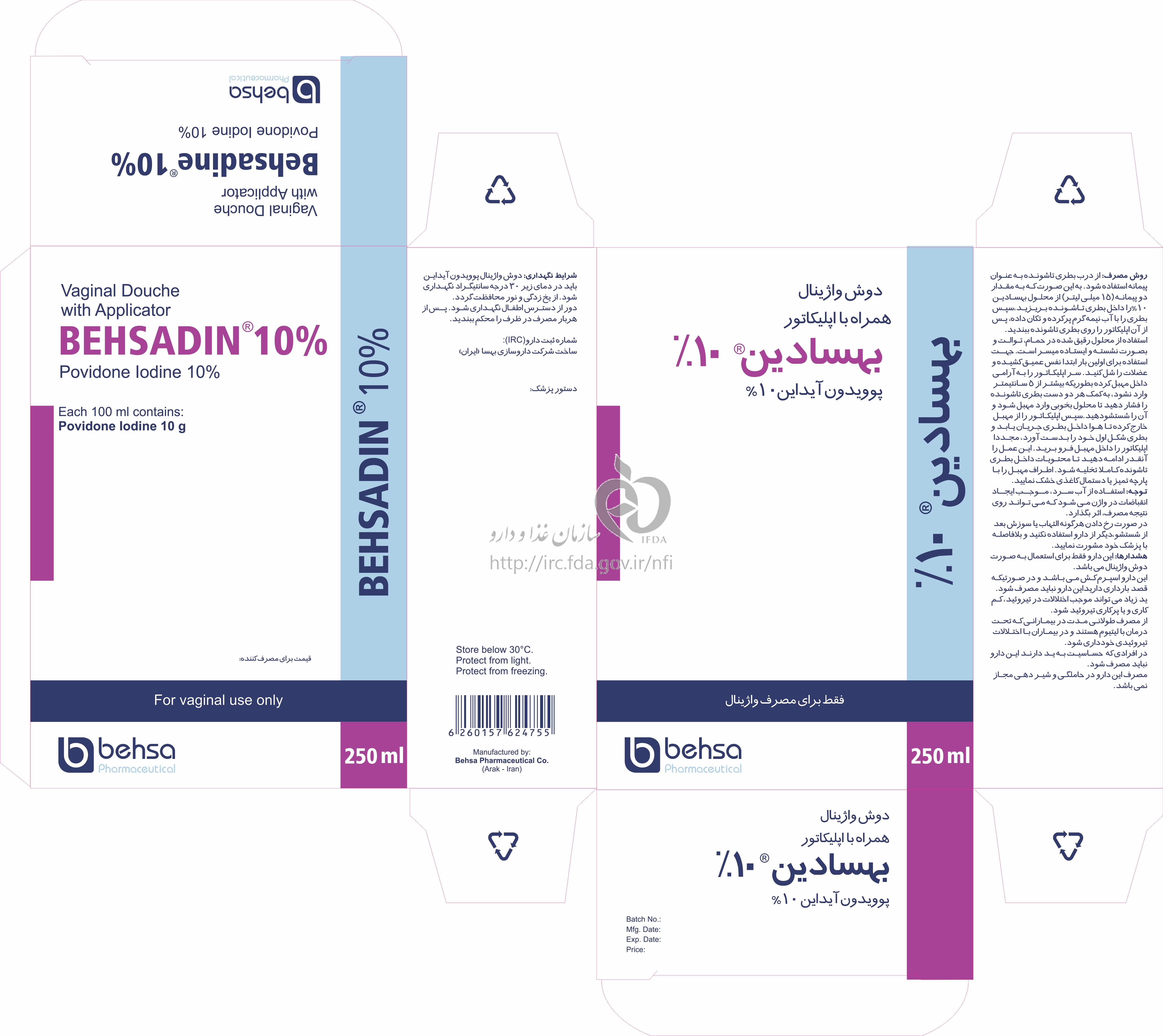 بهسادین دوش واژینال 10 % 250MILLILITER