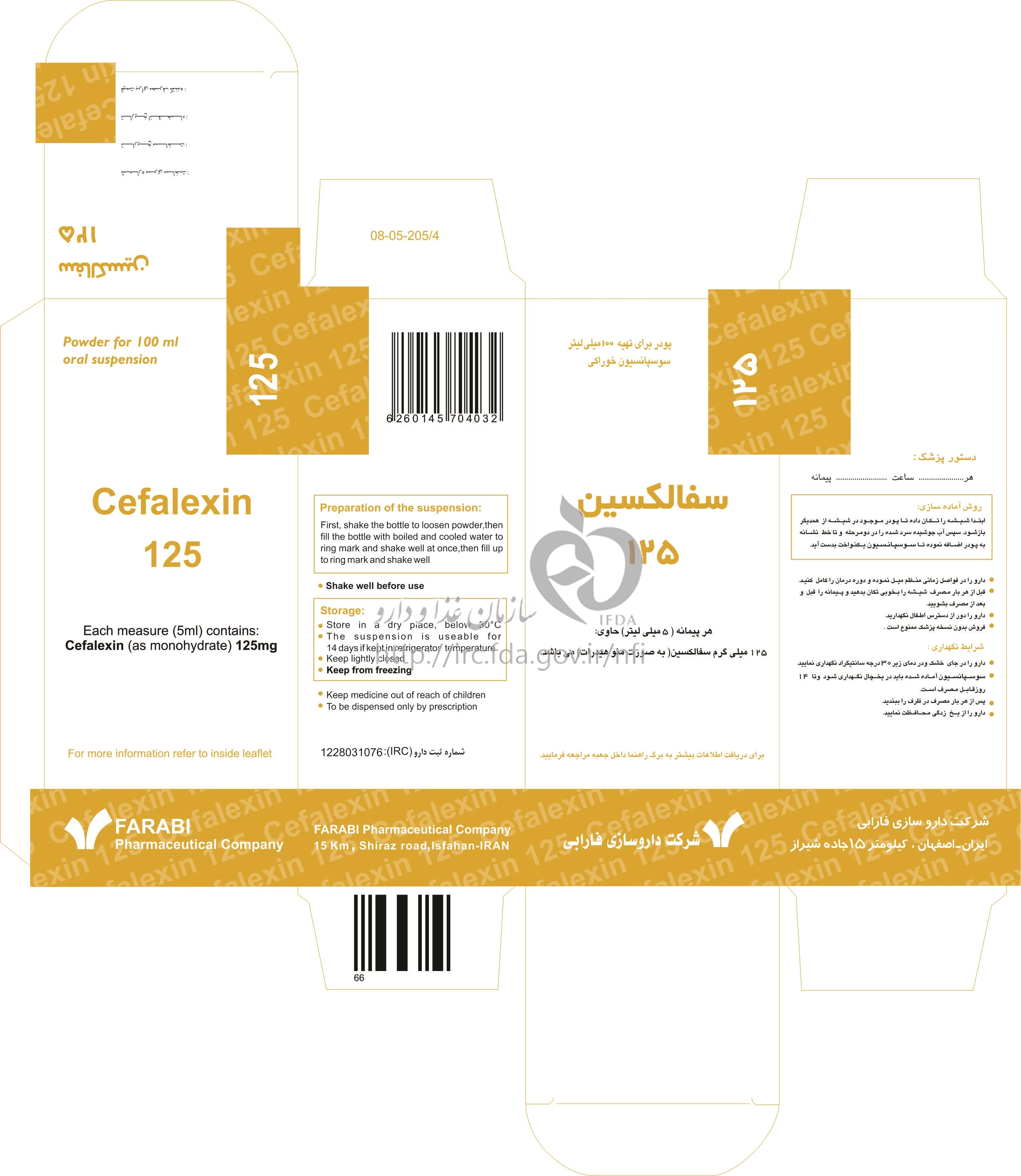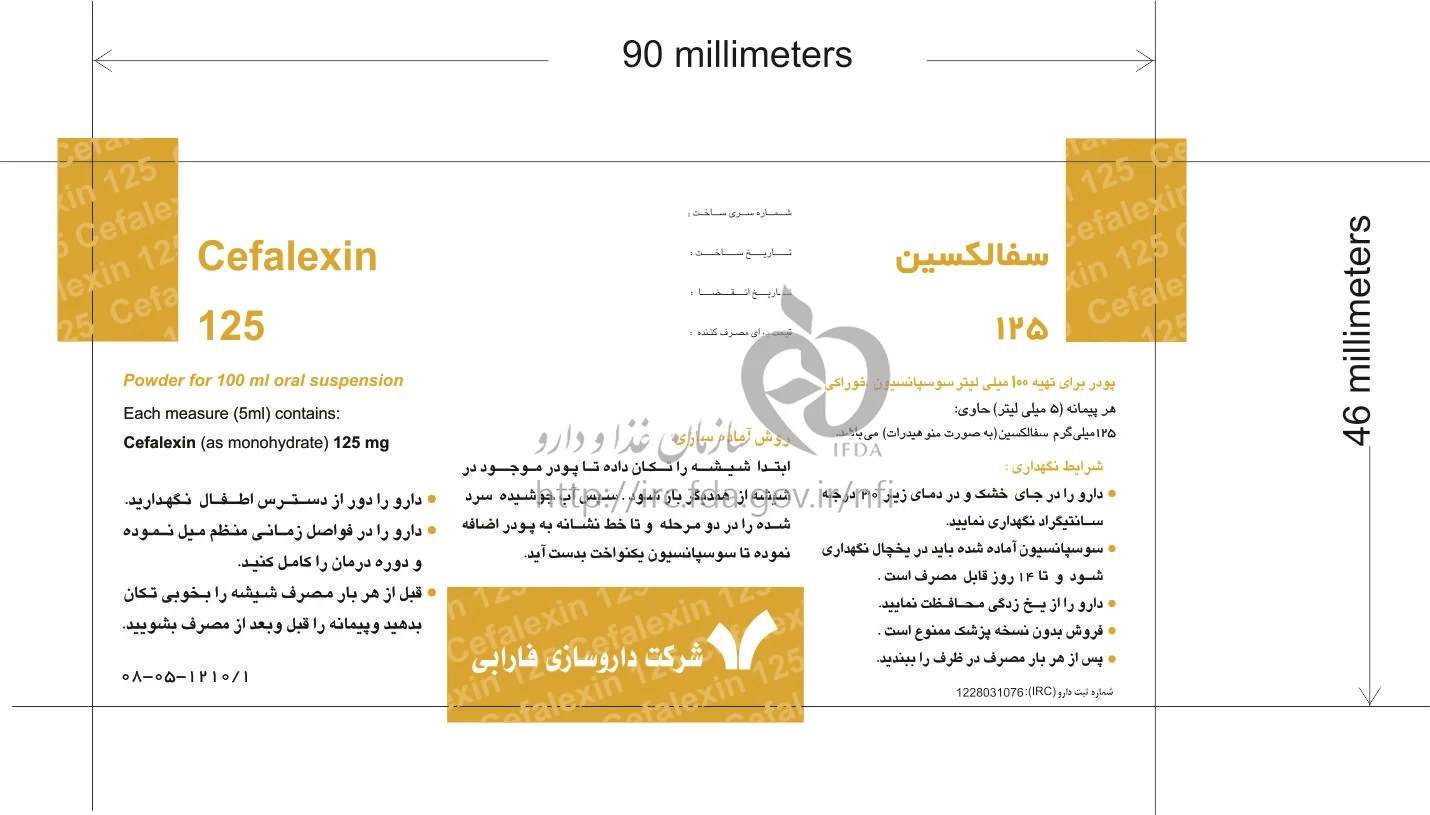 سفالکسین پودر برای تهیه سوسپانسیون خوراکی 125 mg/5mL 100MILLILITER