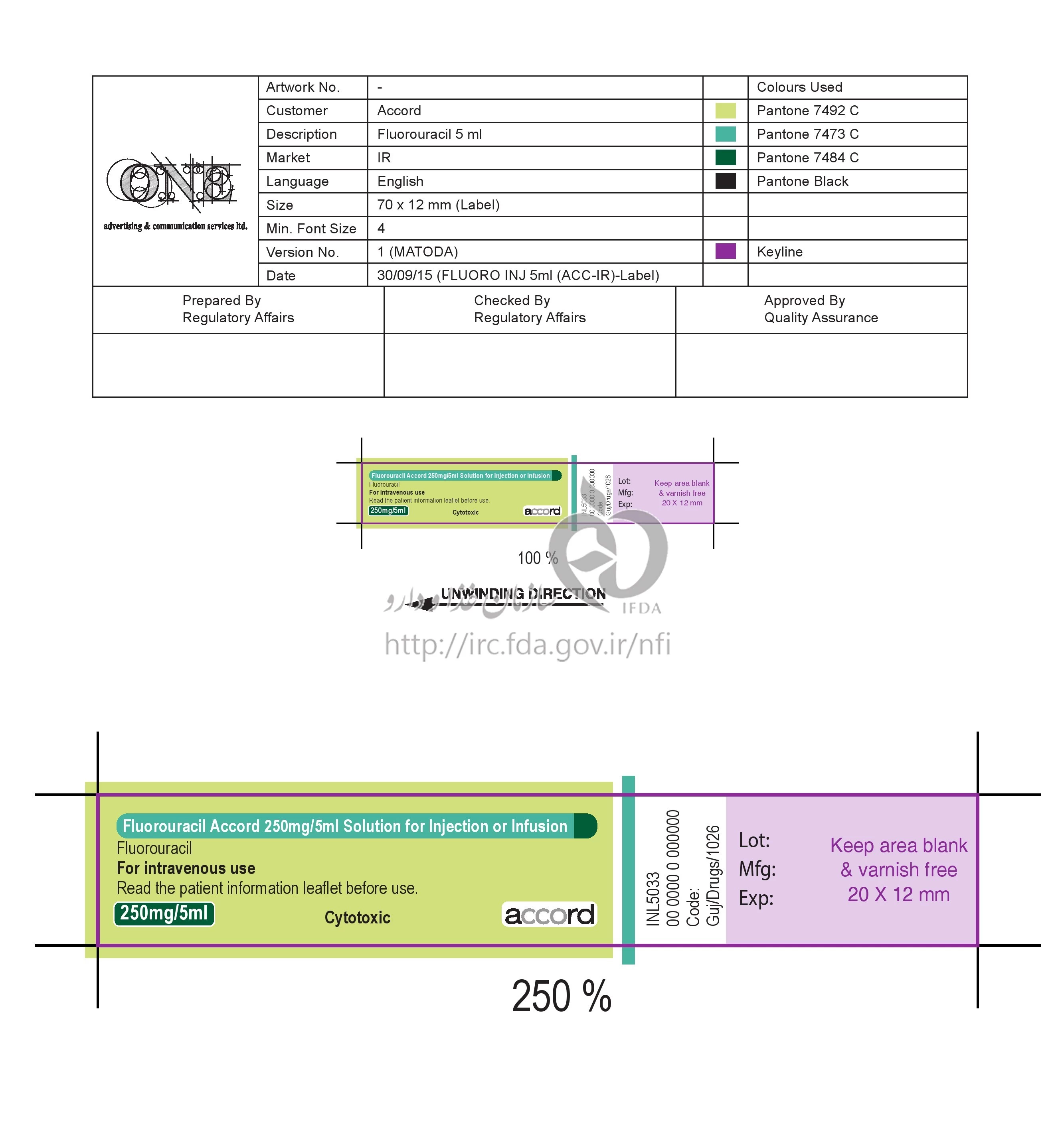 دکترها فلورواوراسیل آکورد تزریقی پرنترال 50 mg/1mL 5MILLILITER