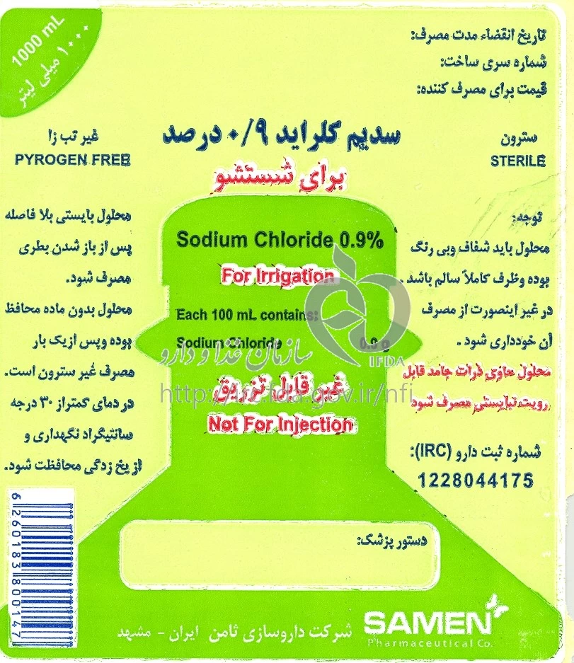 سدیم کلراید محلول جهت شستشو 0.9 % 1000MILLILITER