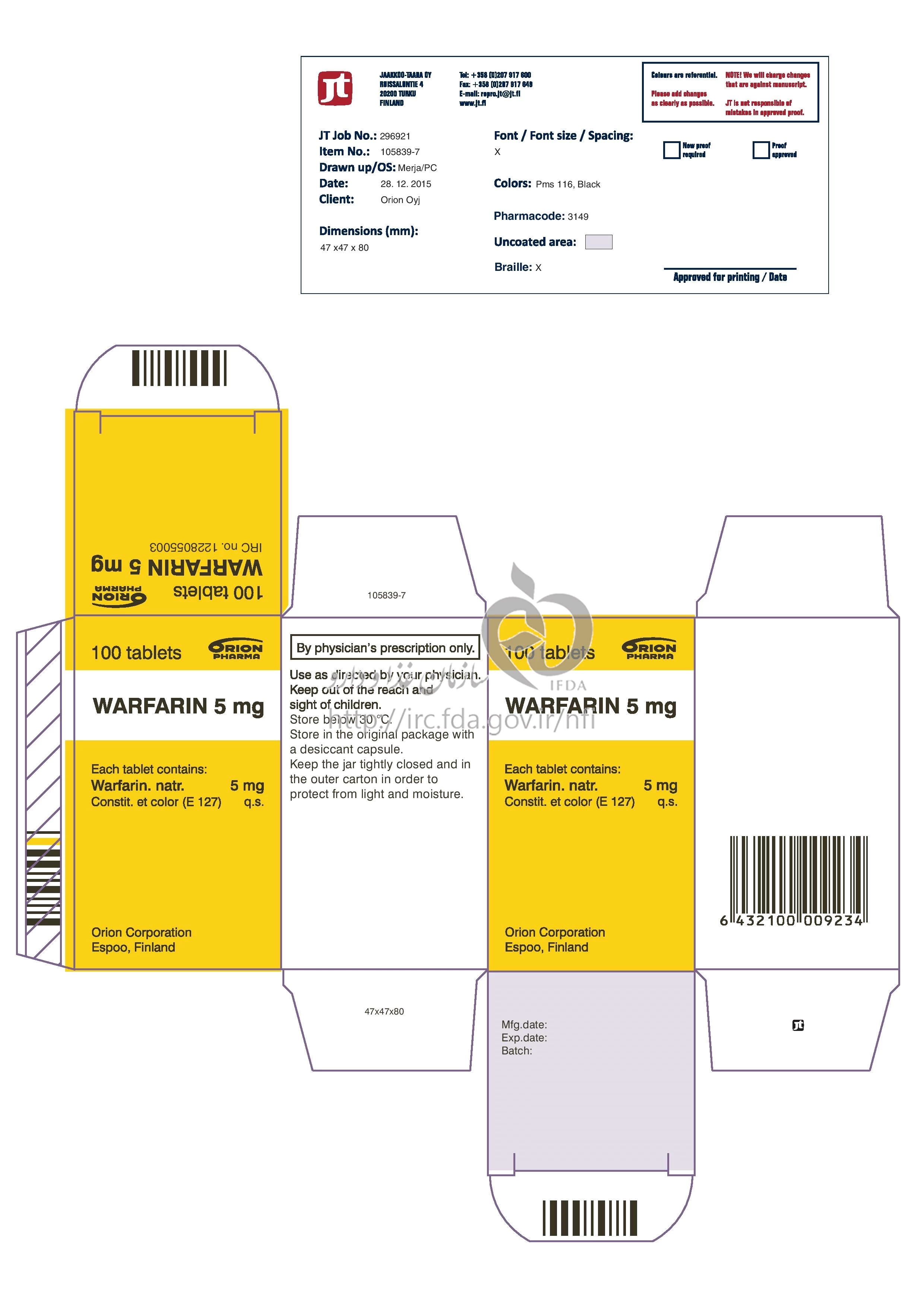 وارفارین قرص خوراکی 5 mg