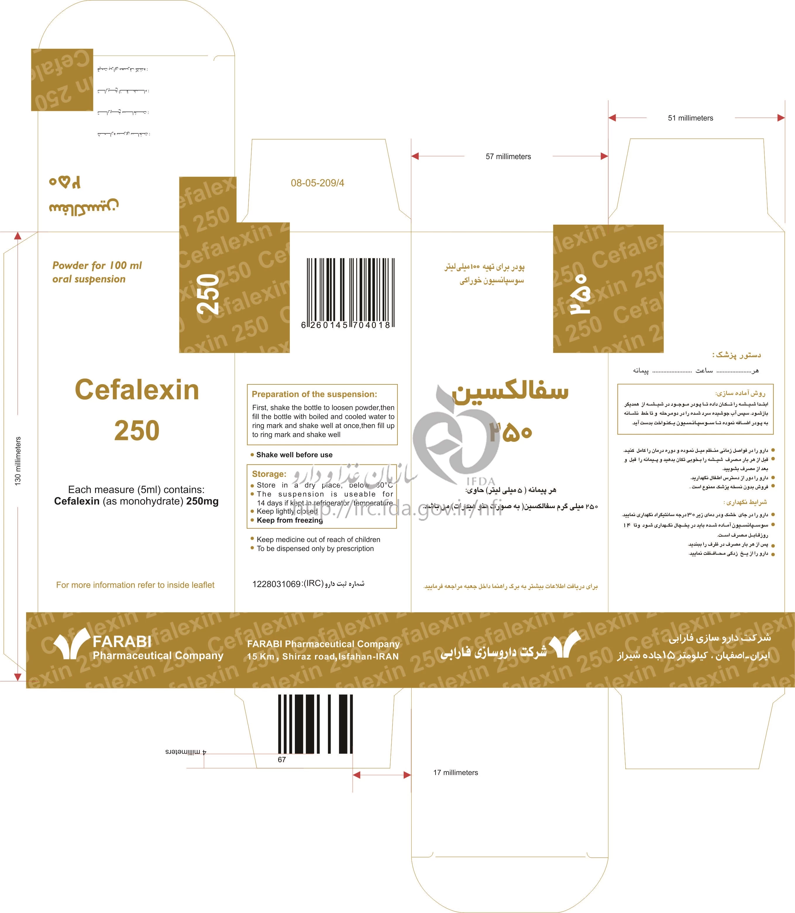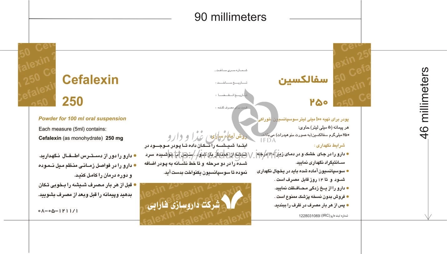 سفالکسین پودر برای تهیه سوسپانسیون خوراکی 250 mg/5 mL 100MILLILITER