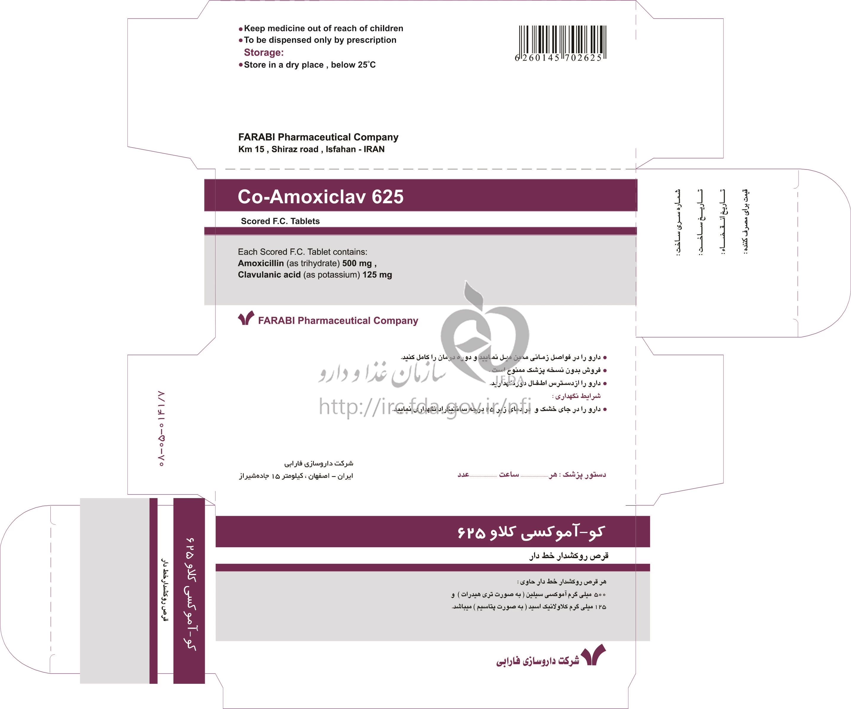 کو - آموکسی کلاو قرص خوراکی 500 mg/125 mg