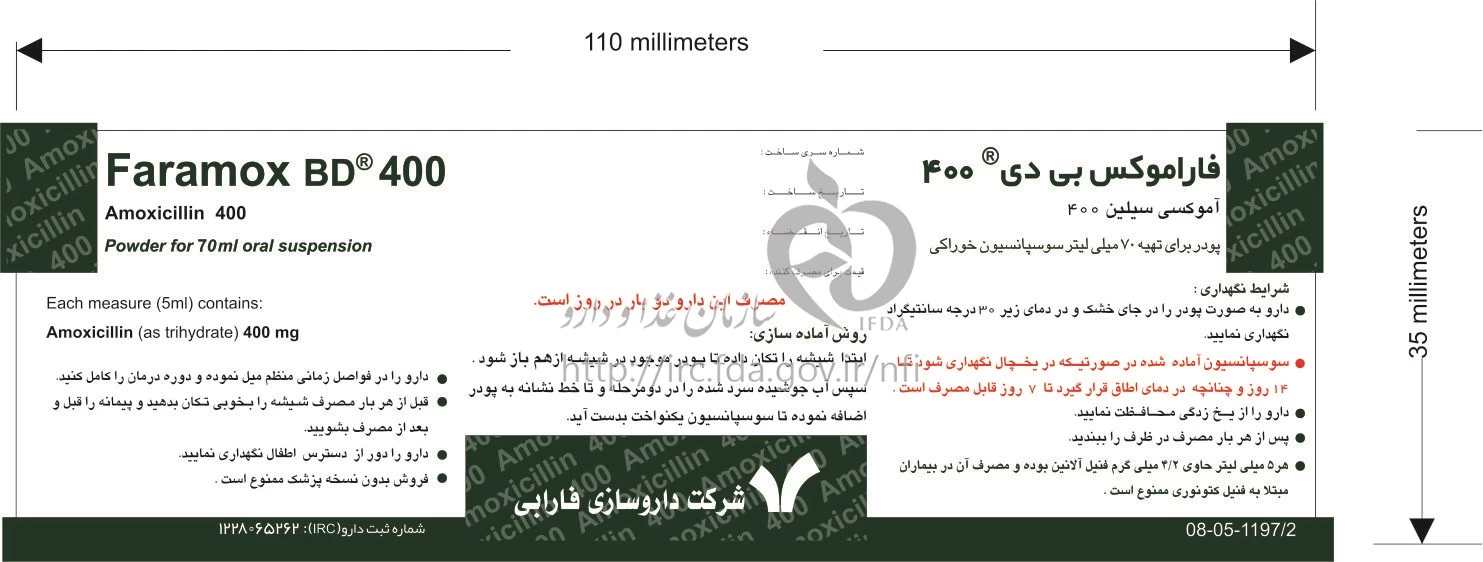 فاراموکس بی دی پودر برای تهیه سوسپانسیون خوراکی 400 mg/5 mL 70MILLILITER