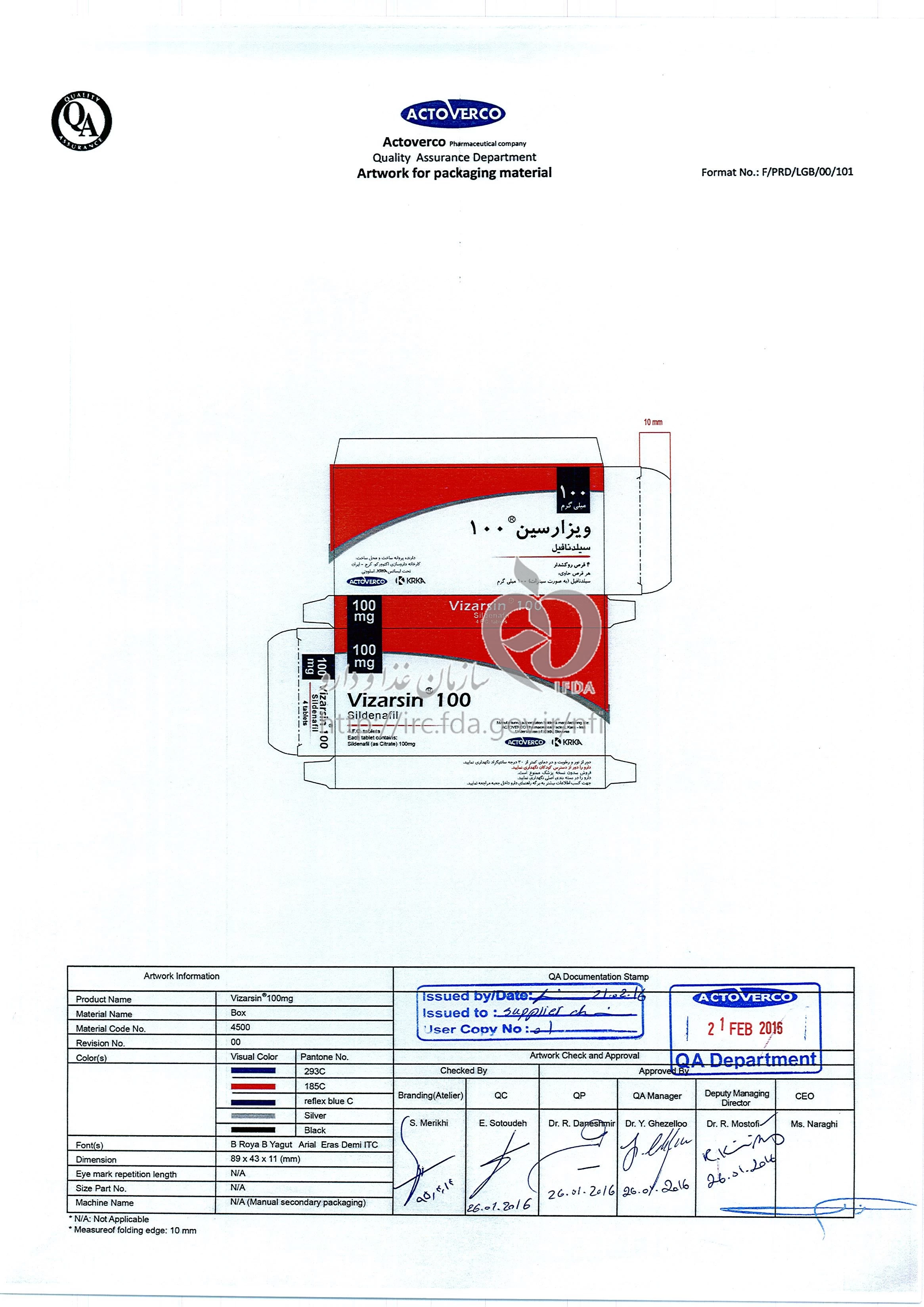 دکترها ویزارسین قرص خوراکی 100 mg