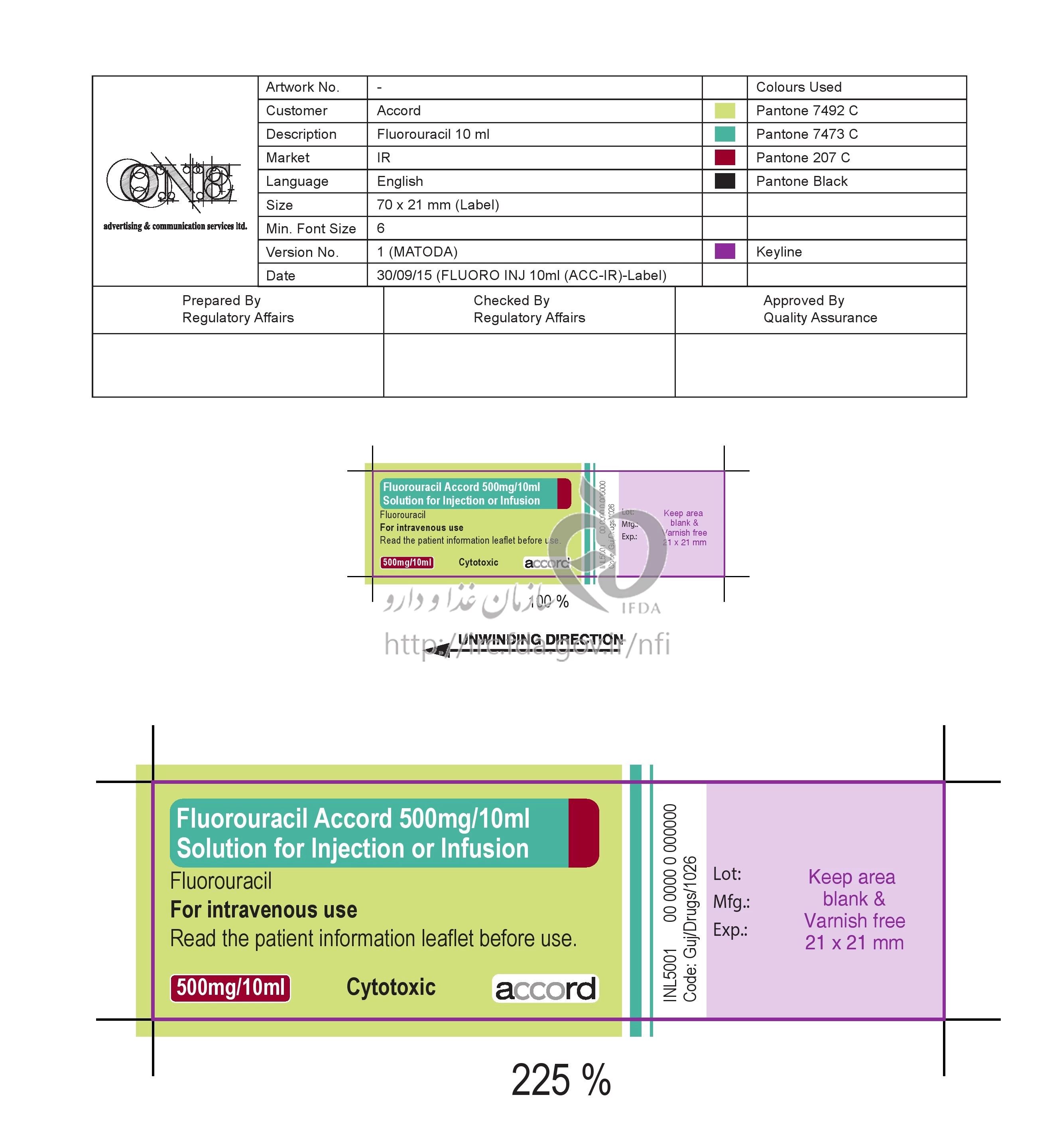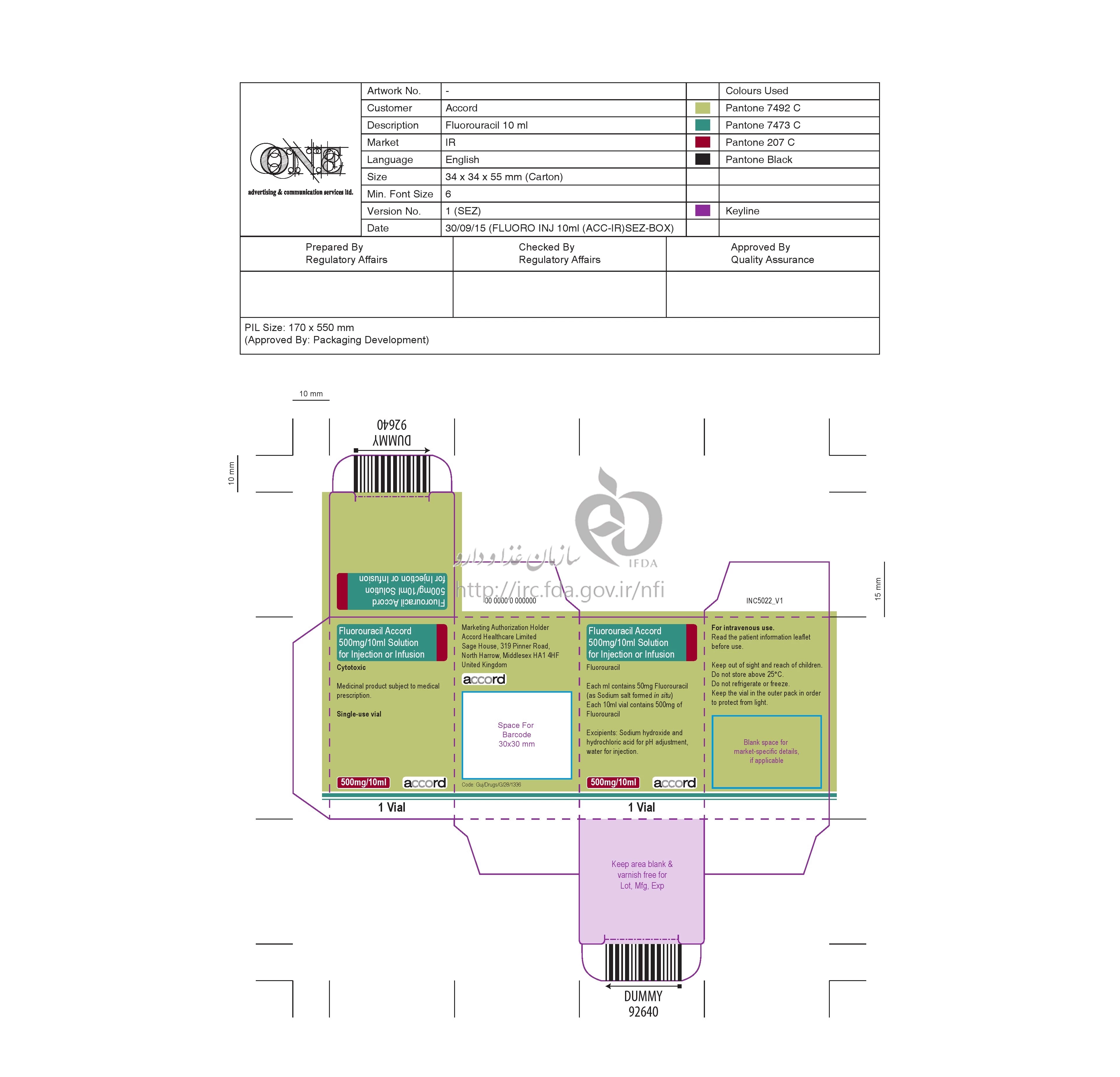 فلورواوراسیل آکورد تزریقی پرنترال 50 mg/1mL 10MILLILITER