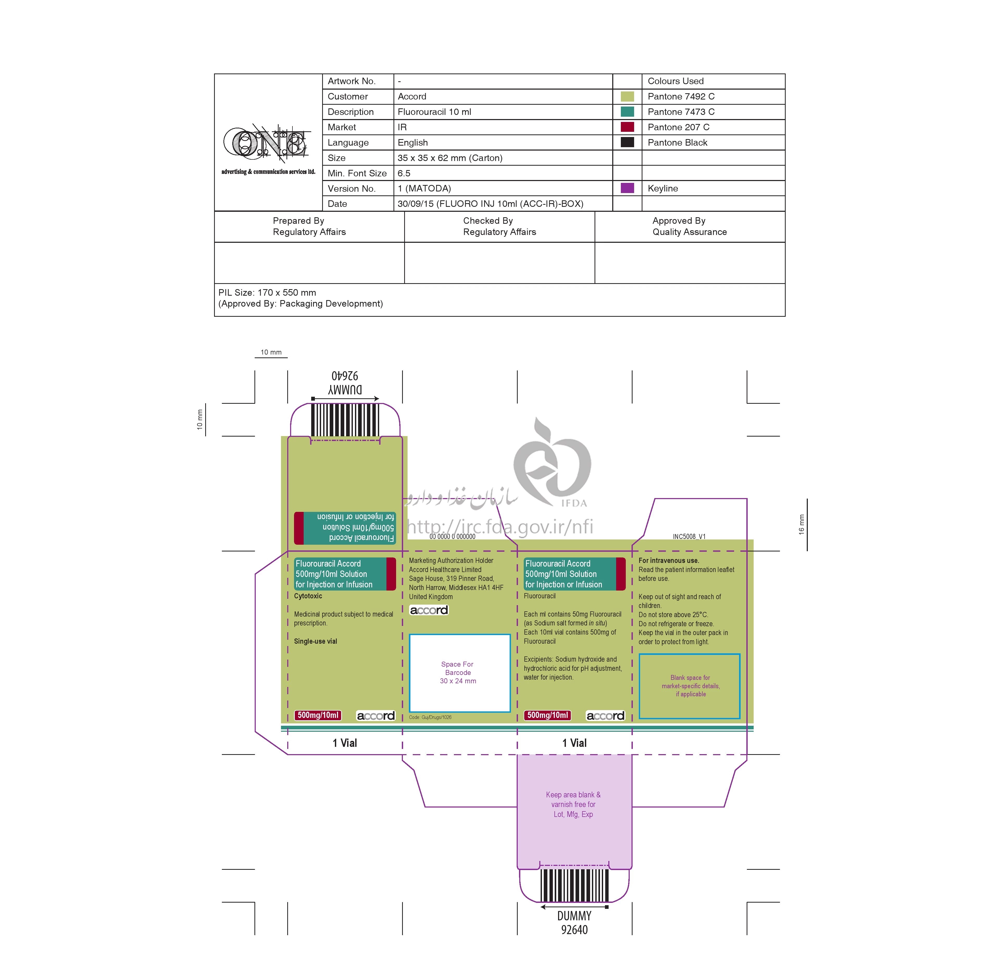 دکترها فلورواوراسیل آکورد تزریقی پرنترال 50 mg/1mL 10MILLILITER