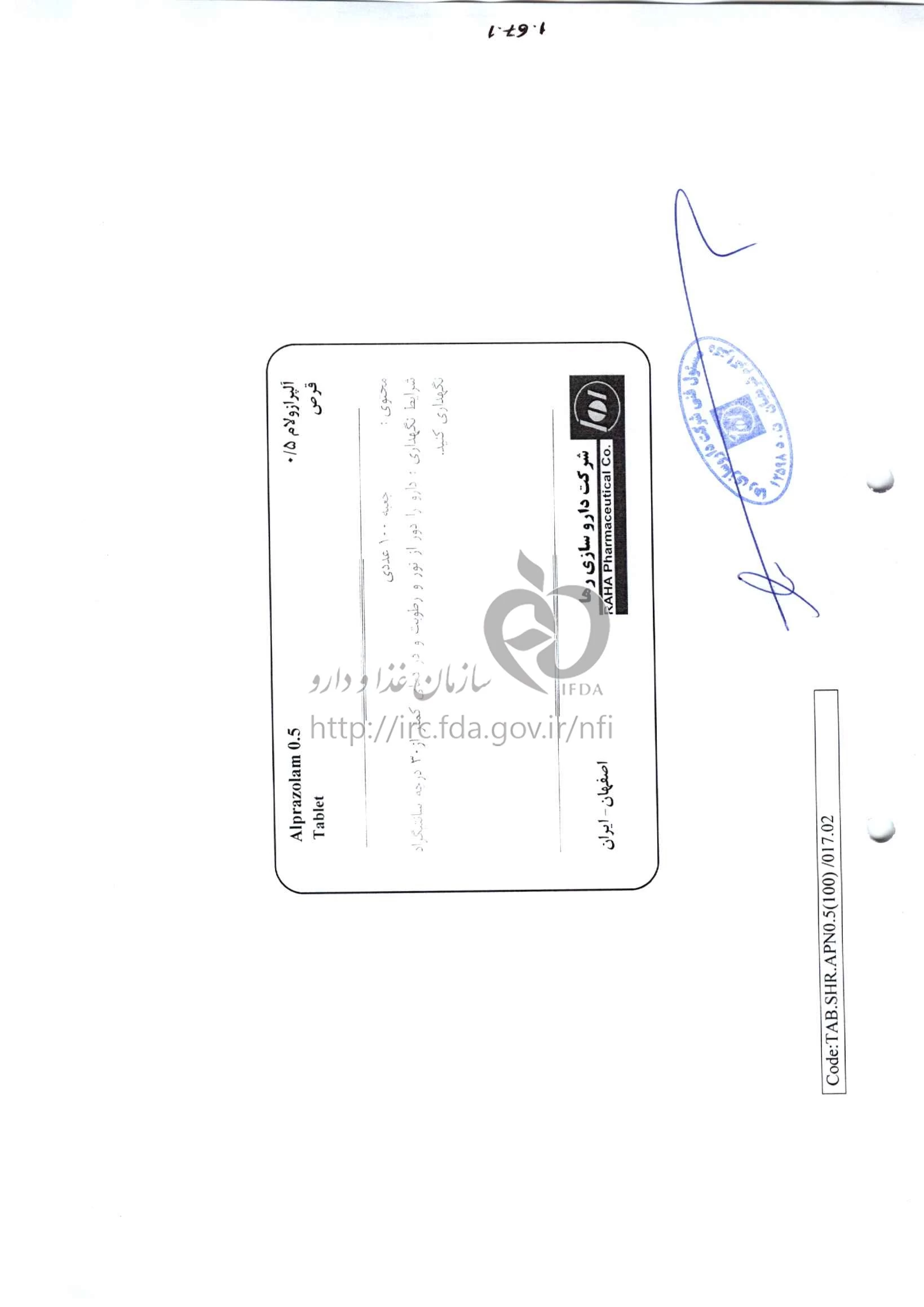 آلپرازولام قرص خوراکی 0.5 mg