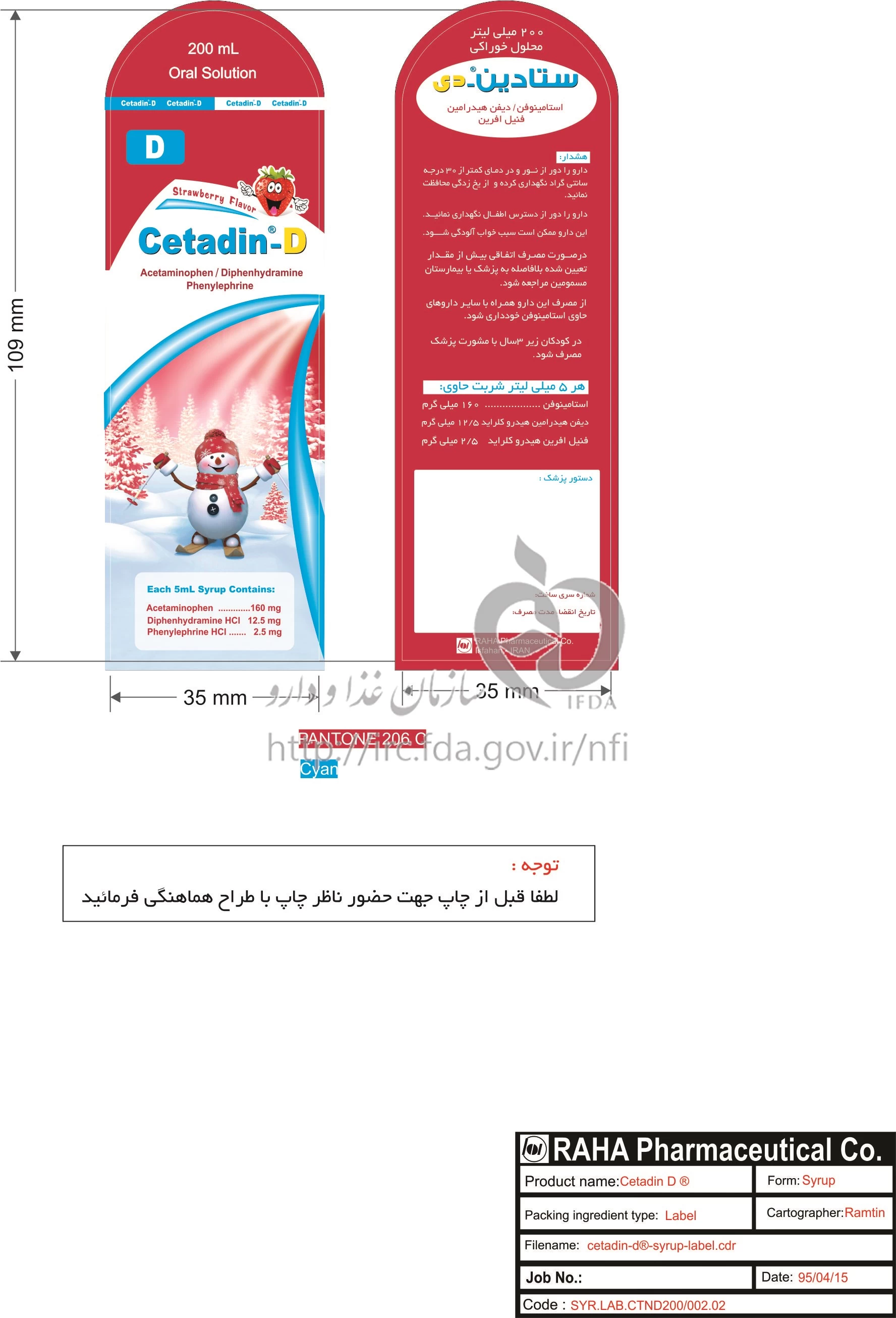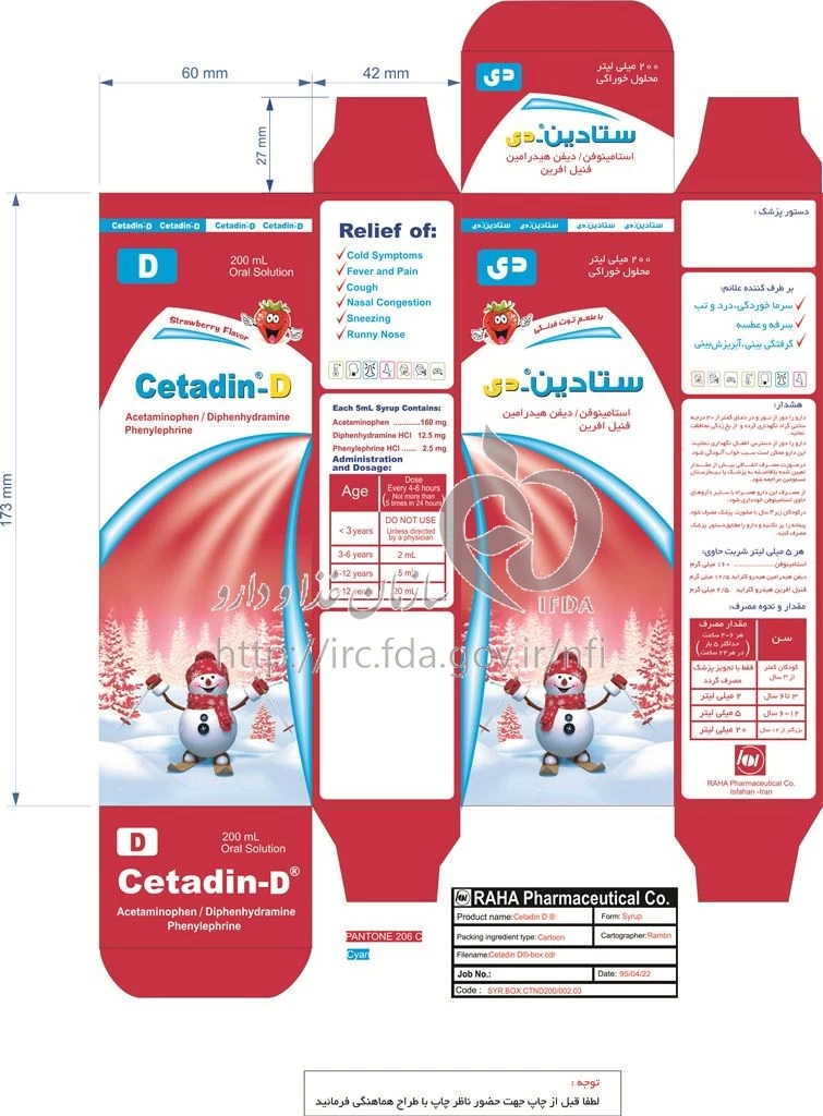 موارد مصرف ، عوارض جانبی ، مصرف بارداری و تداخلات دارویی ستادین - دی شربت خوراکی 160 mg/12.5 mg/2.5 mg/5mL 200MILLILITER