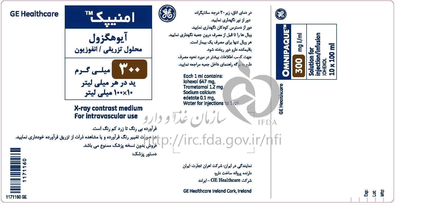 IOHEXOL INJECTION PARENTERAL 300 mg/1mL 100MILLILITER