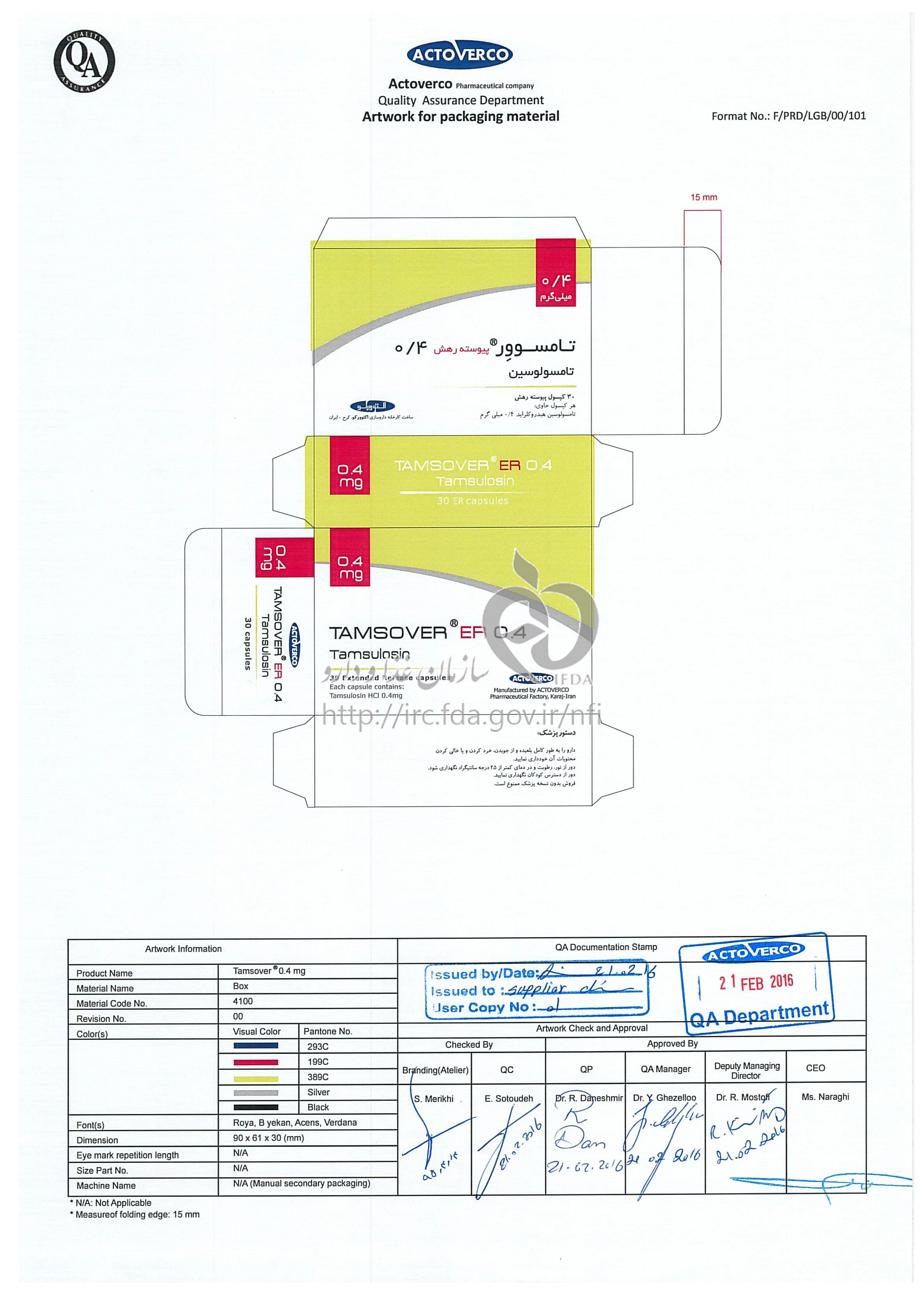 تامسوور کپسول پیوسته رهش خوراکی 0.4 mg