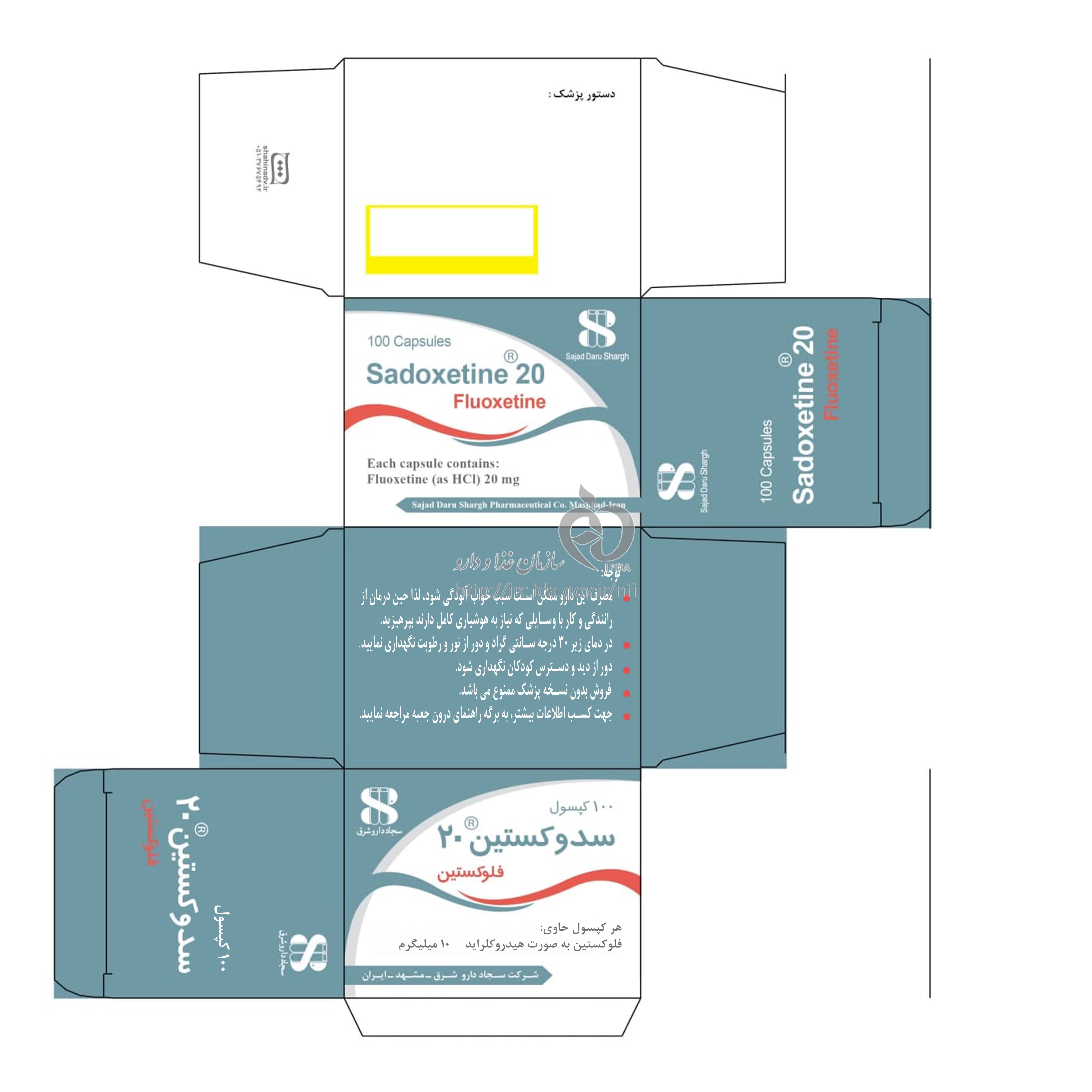 سدوکستین 20 کپسول خوراکی 20 mg