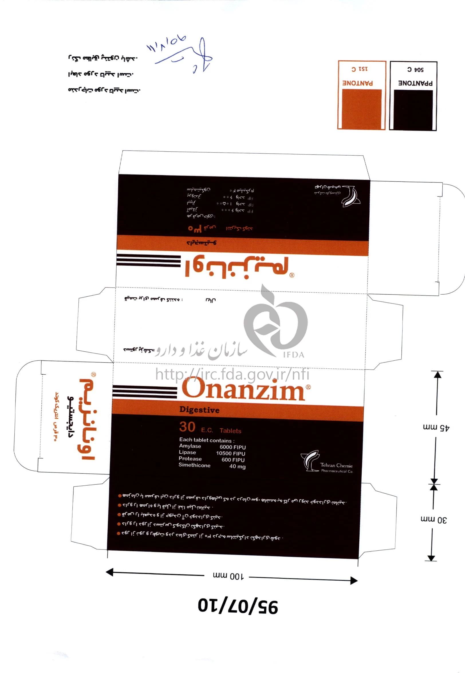اونانزیم قرص انتریک کوتد خوراکی 40 mg/6000 [iU]/10500 [iU]/600 [iU]