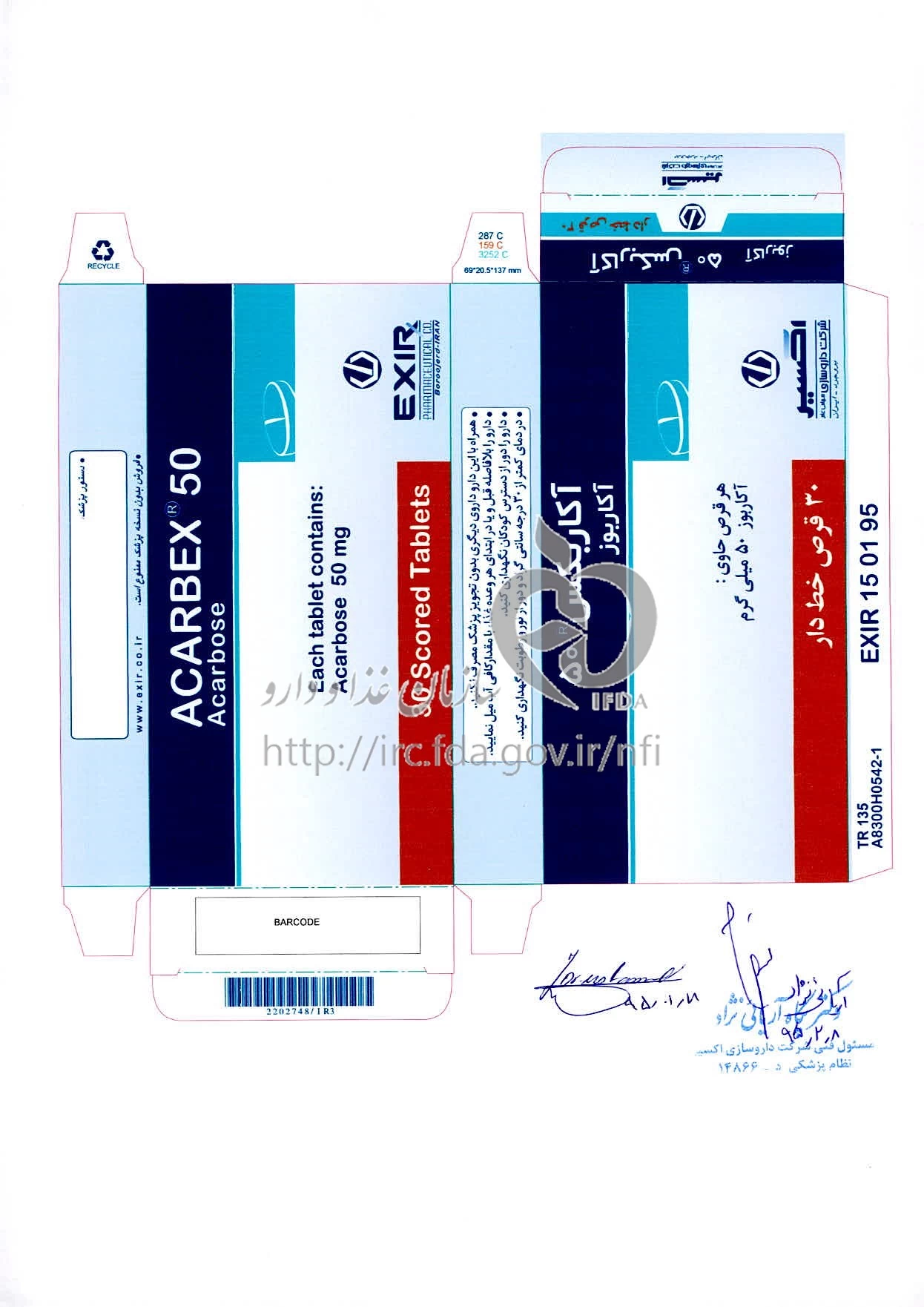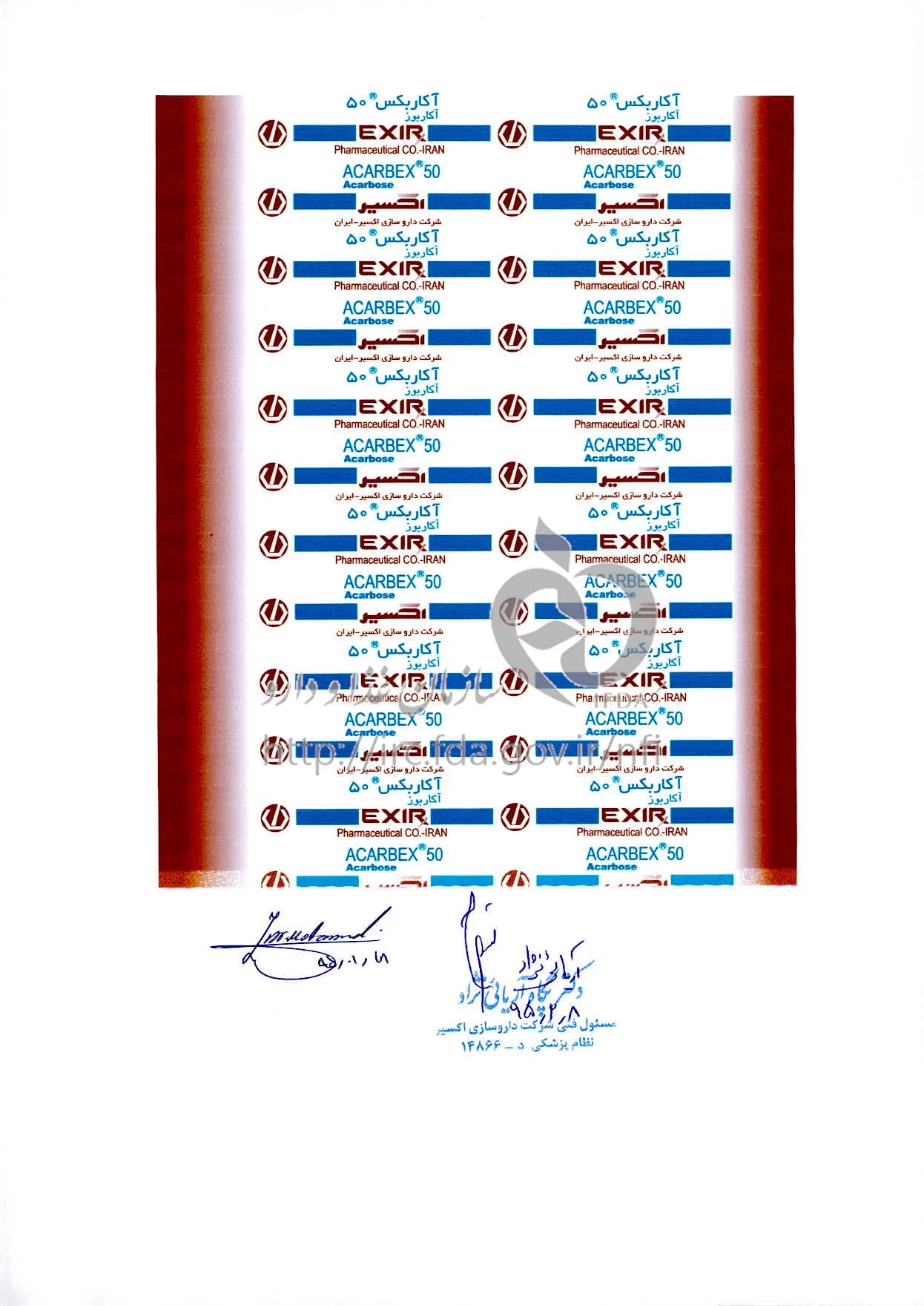 تداخل های دارویی آکاربکس قرص خوراکی 50 mg
