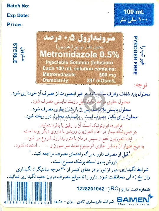 موارد مصرف مترونیدازول محلول تزریقی پرنترال 5 mg/1mL 100MILLILITER