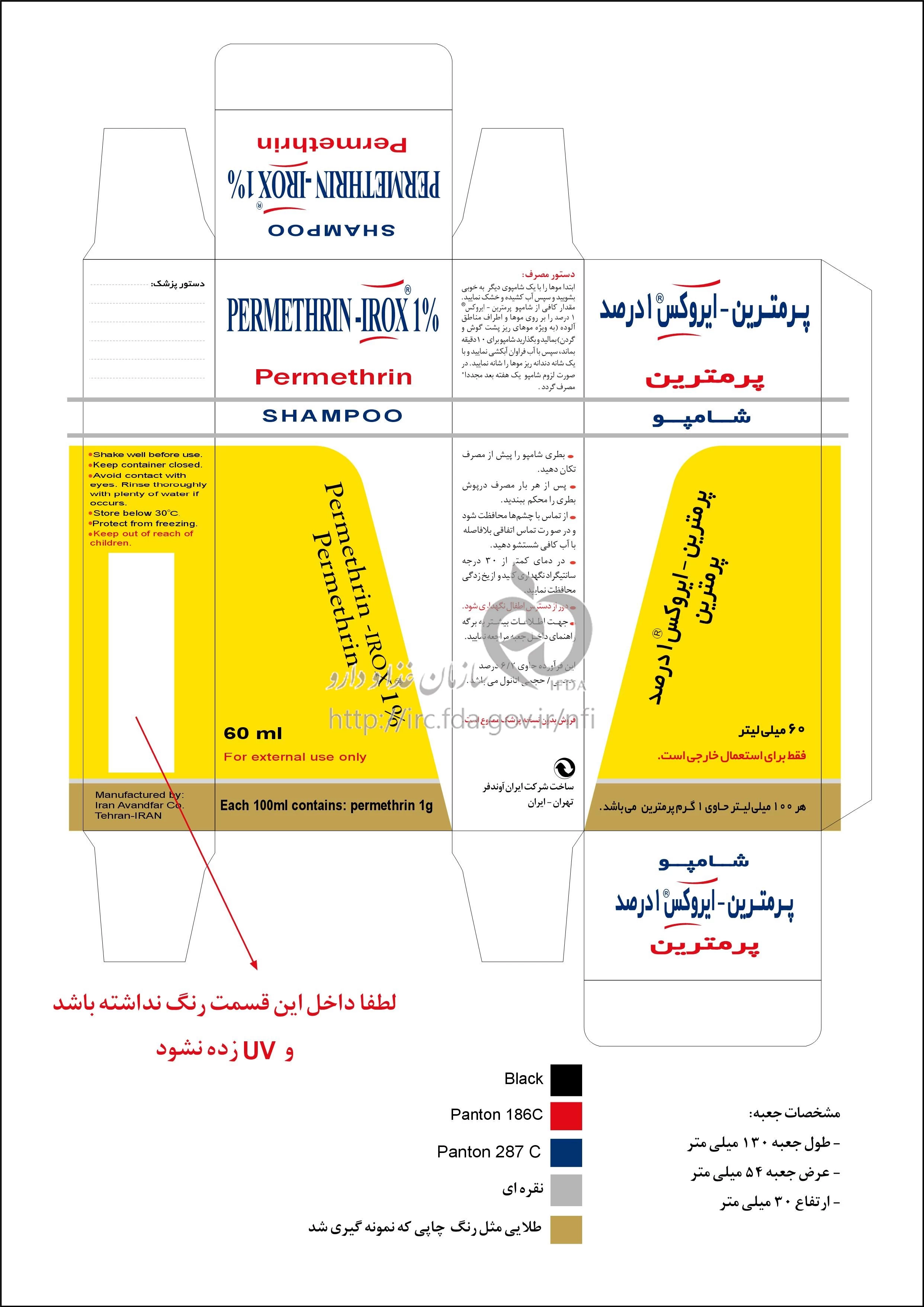 پرمترین - آیروکس شامپو موضعی 1 % 60MILLILITER