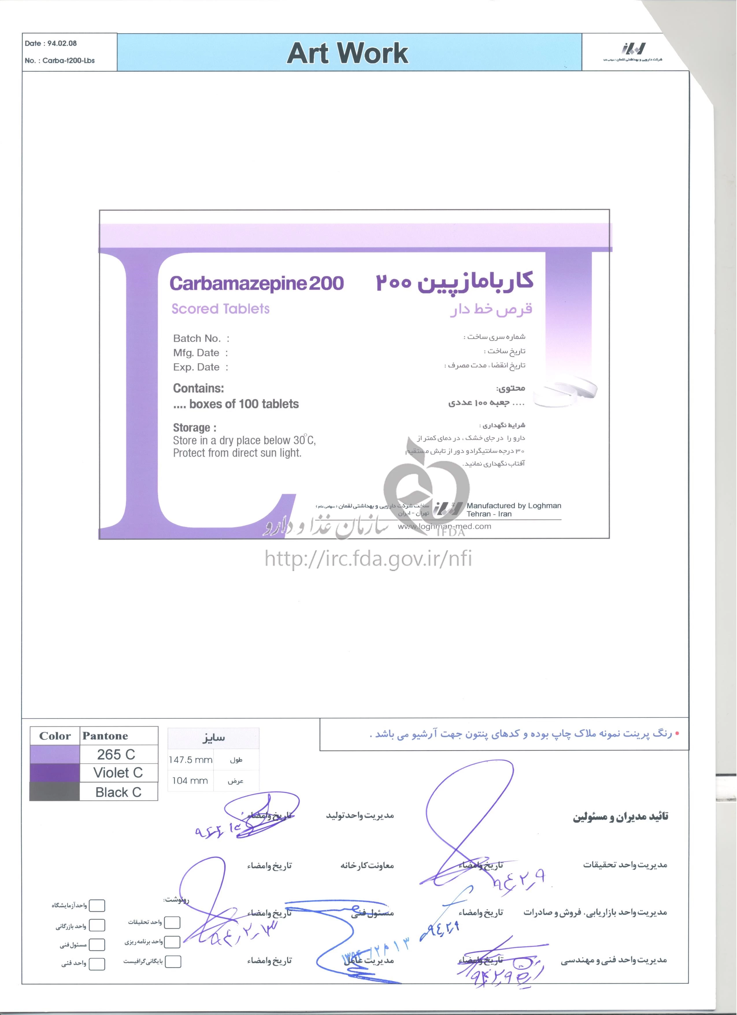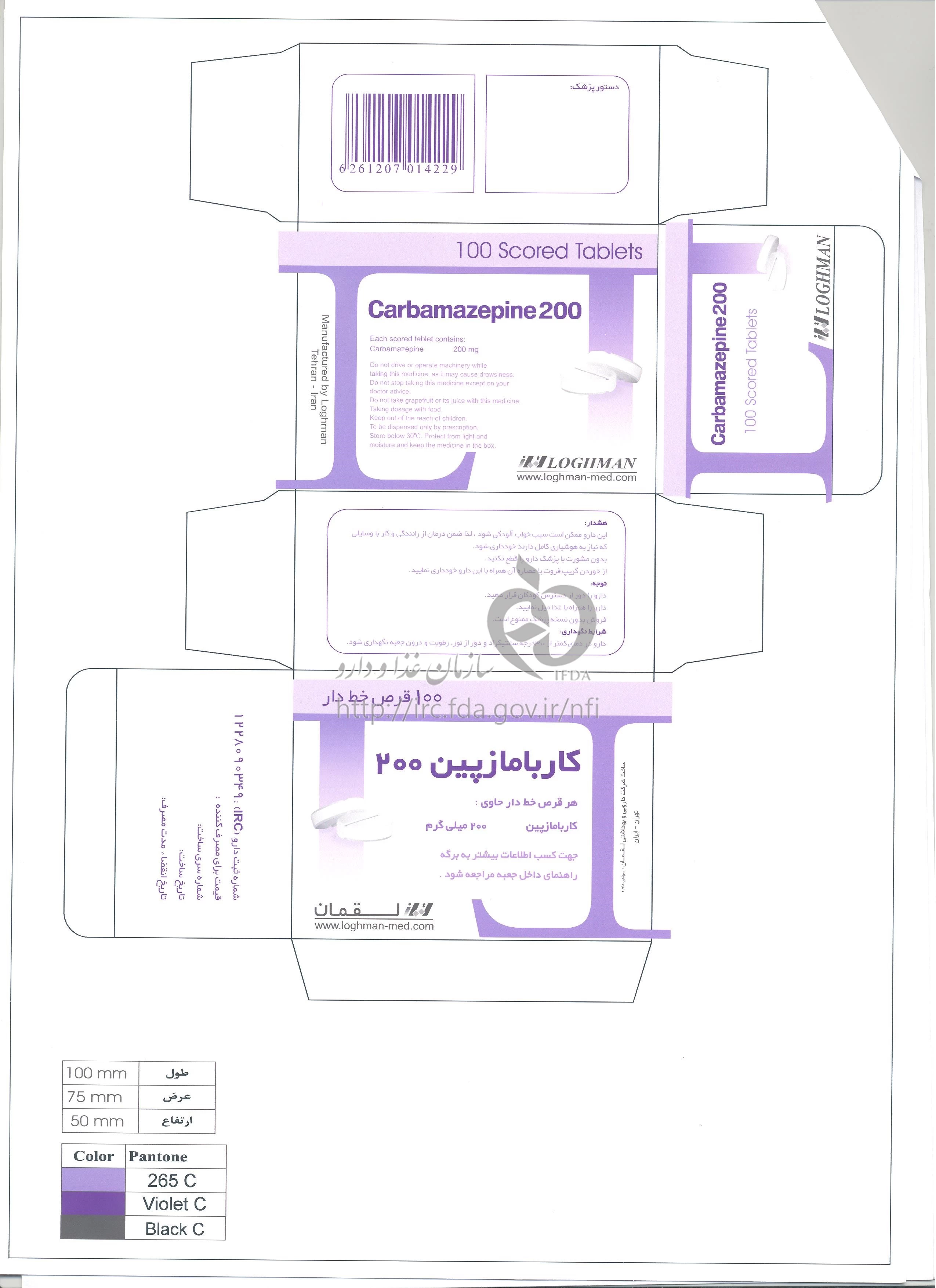 كاربامازپين قرص خوراکی 200 mg
