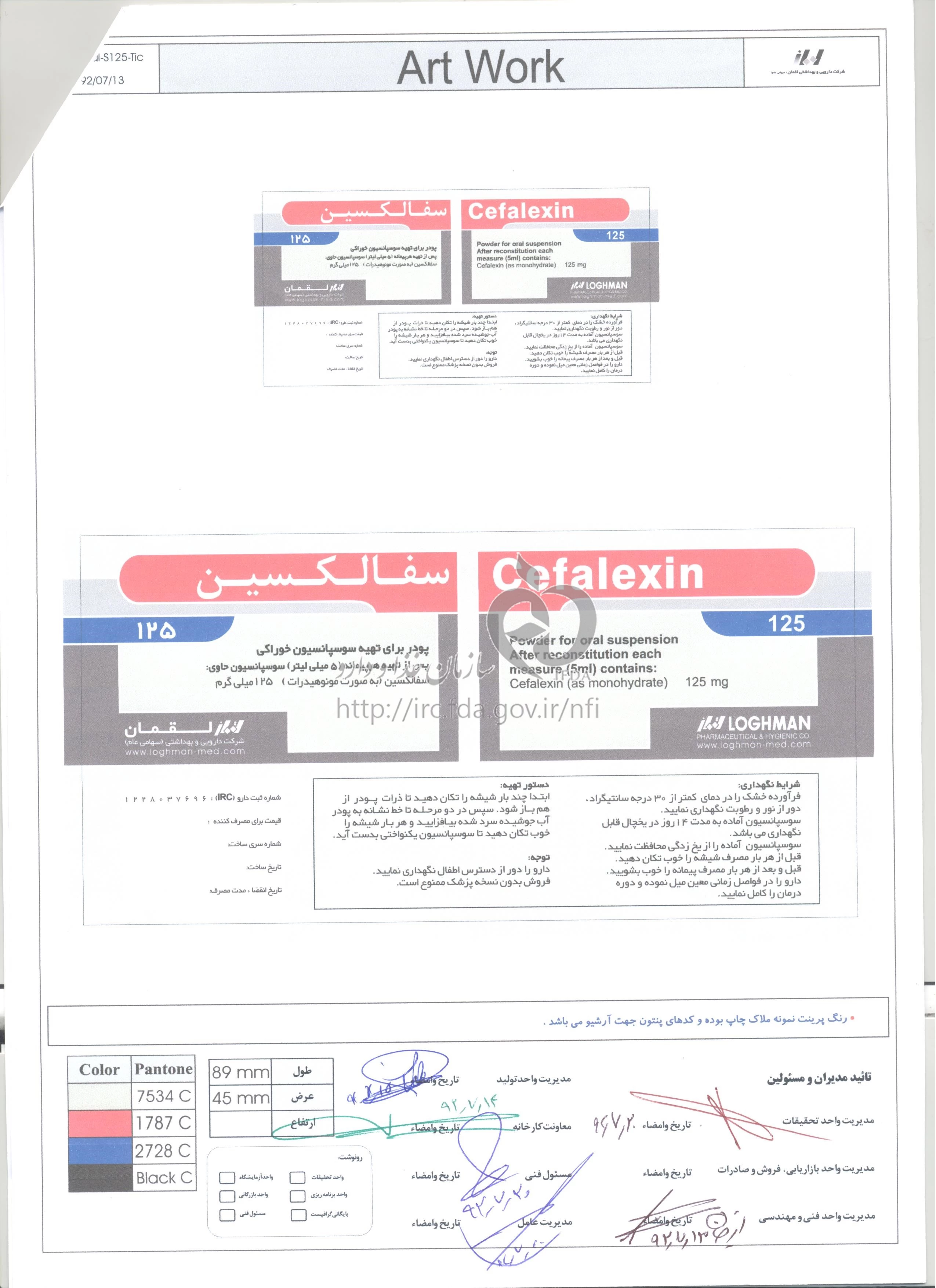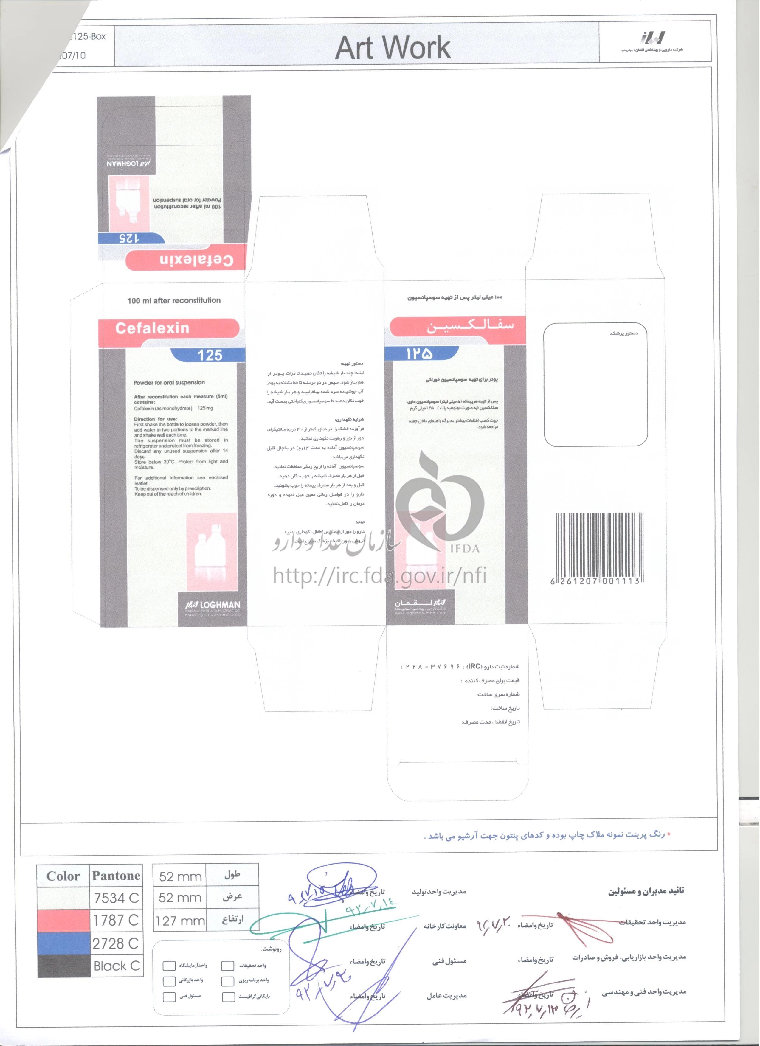 سفالکسین پودر برای تهیه سوسپانسیون خوراکی 125 mg/5mL 100MILLILITER