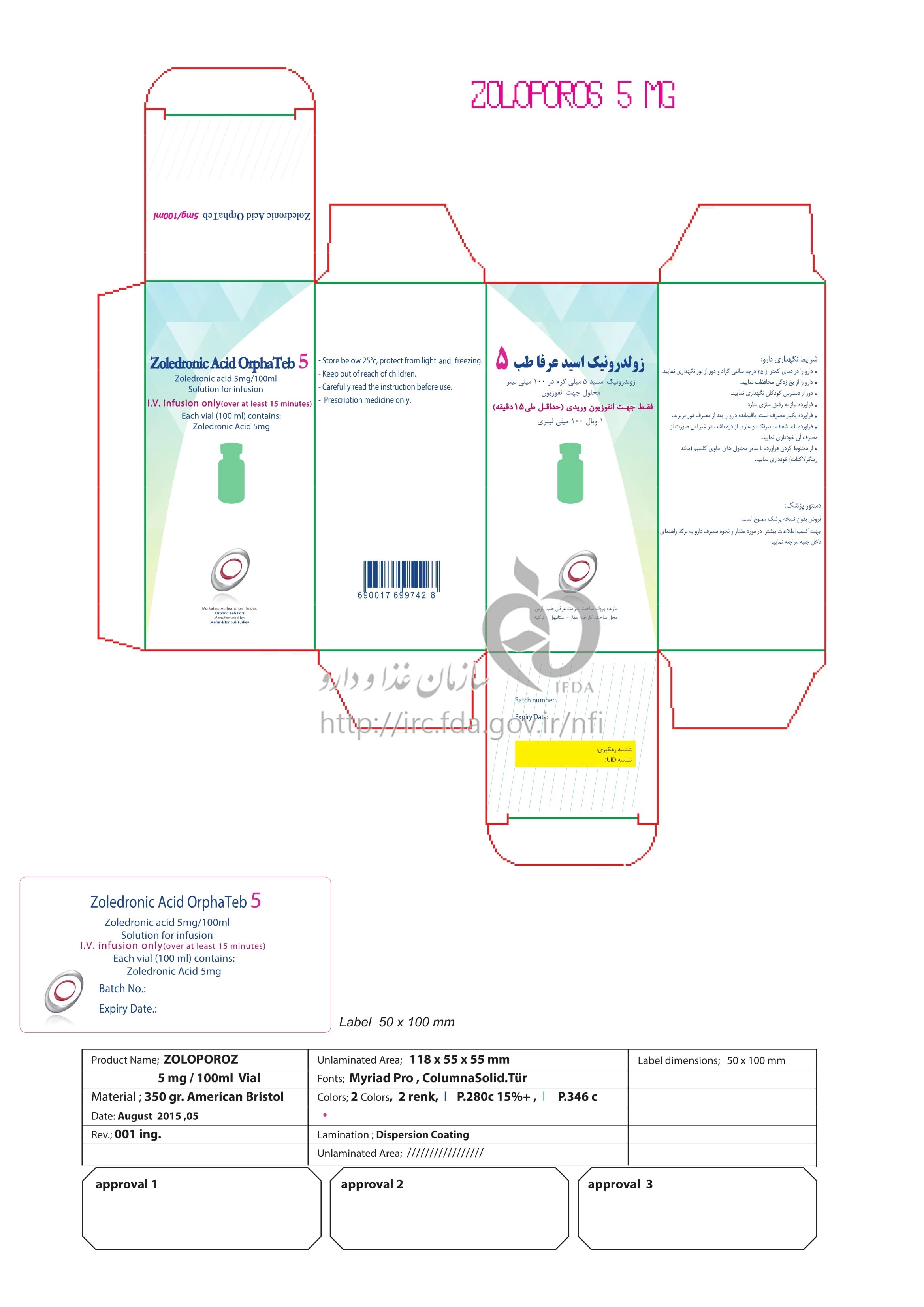 زولدرونیک اسید محلول تزریقی پرنترال 5 mg/100mL