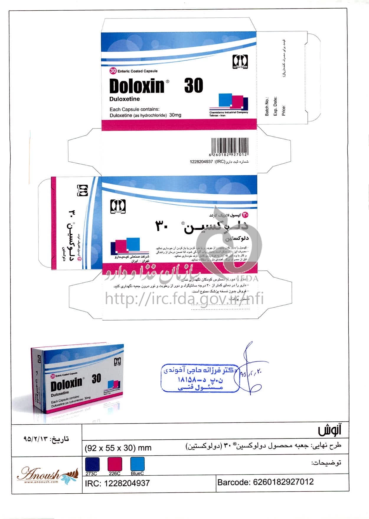 دلوکسین کپسول انتریک کوتد خوراکی 30 mg