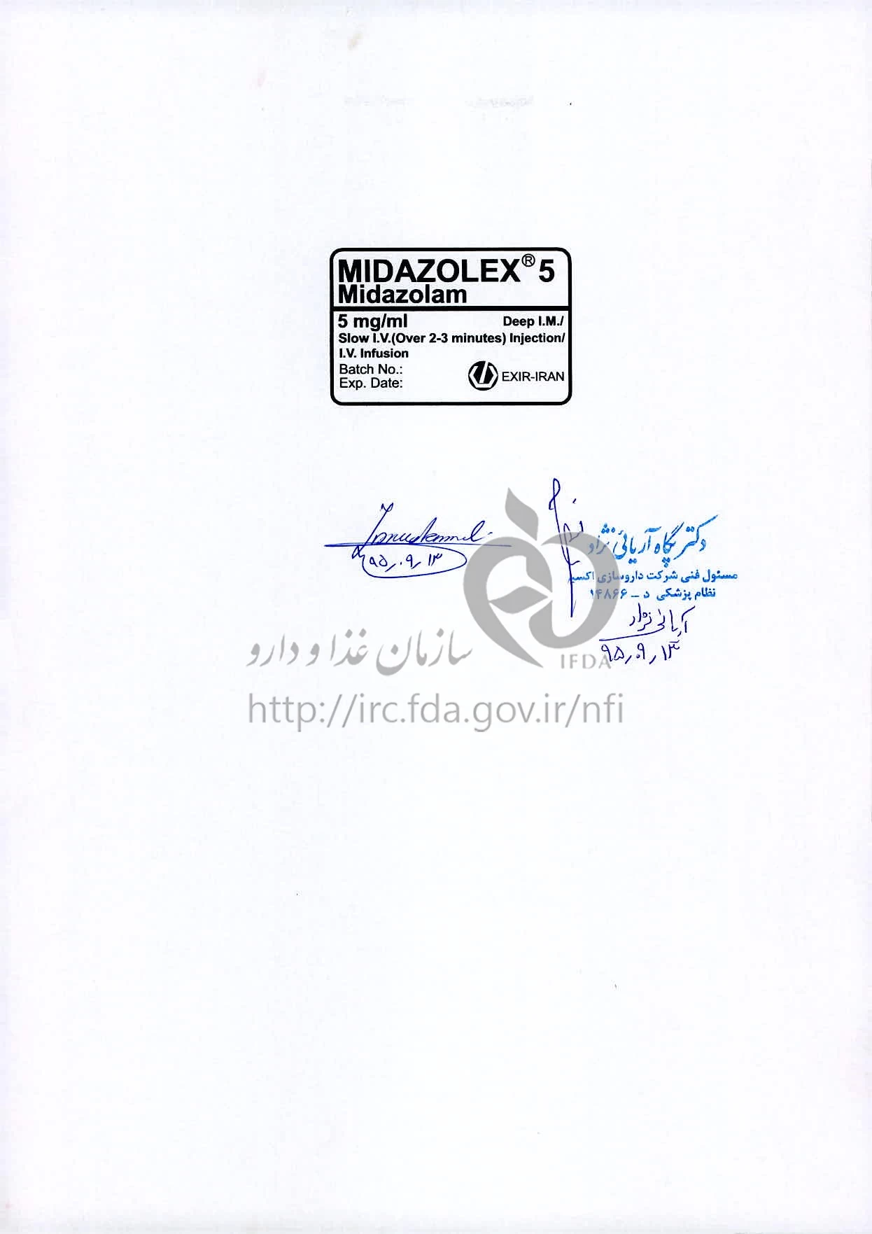 میدازولکس تزریقی پرنترال 5 mg/1mL 1MILLILITER