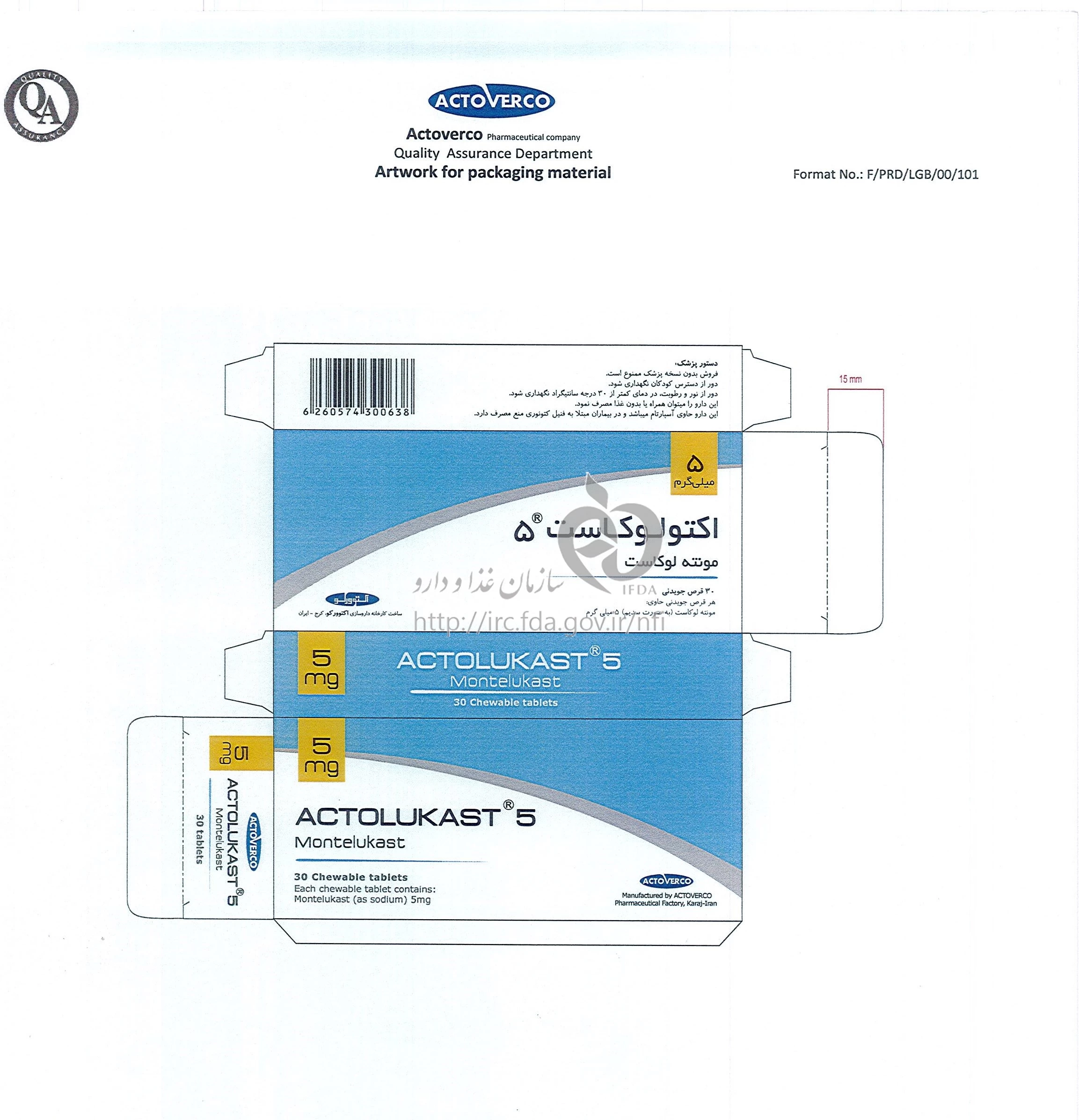 اکتولوکاست قرص جویدنی خوراکی 5 mg