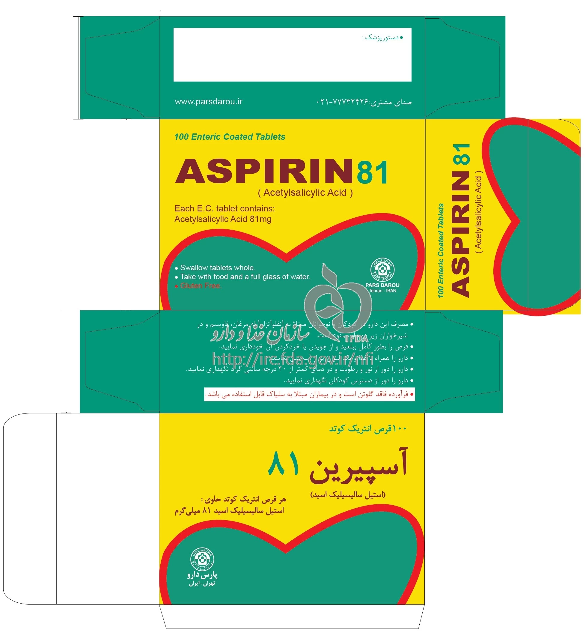 آسپیرین قرص انتریک کوتد خوراکی 81 mg