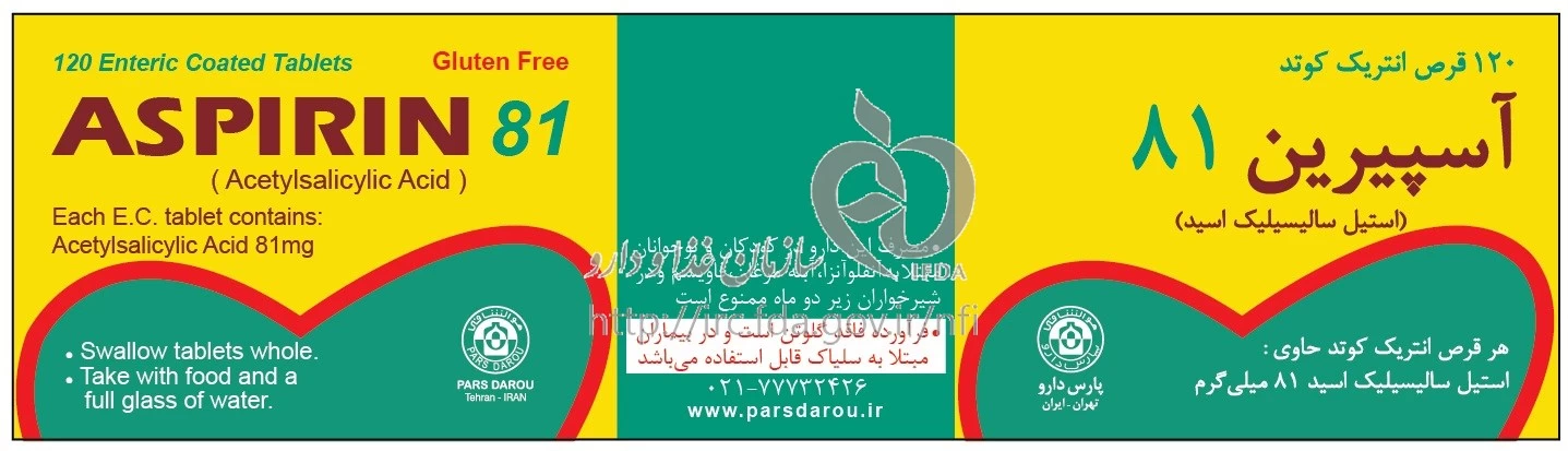 آسپیرین قرص انتریک کوتد خوراکی 81 mg