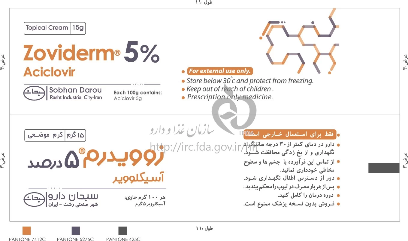 زوویدرم کرم موضعی 5 % 10GRAM