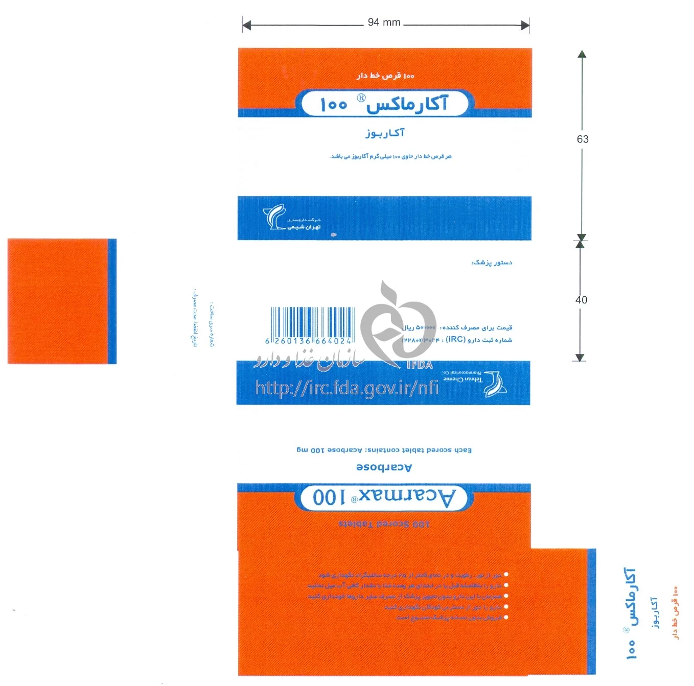 آکارماکس قرص خوراکی 100 mg
