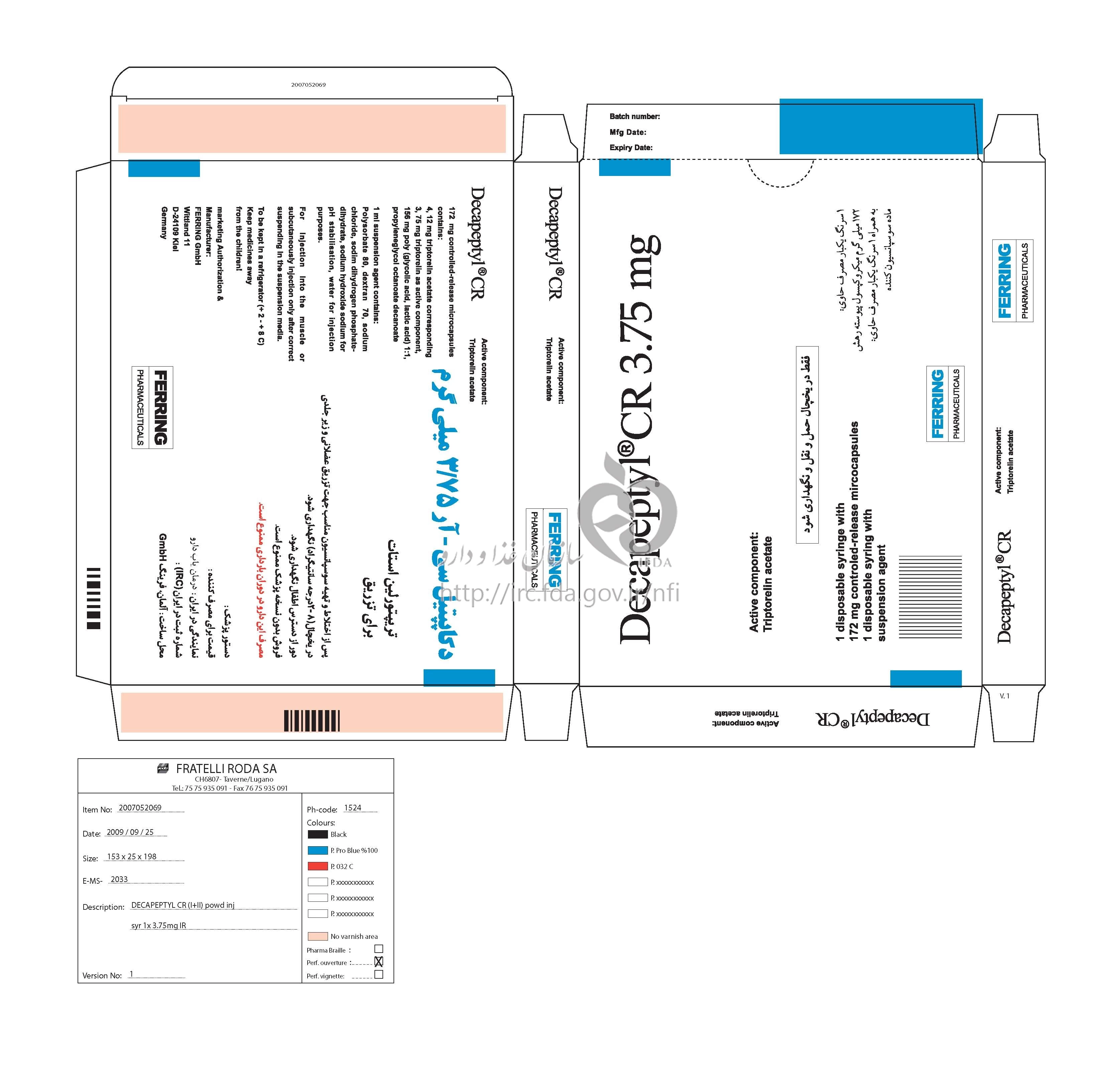 دکاپپتیل پودر لیوفیلیزه سوسپانسیون تزریقی آهسته رهش پرنترال 3.75 mg