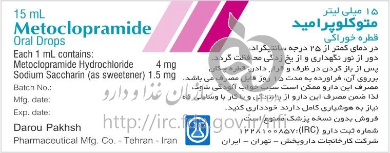 متوکلوپرامید محلول ، قطره خوراکی 4 mg/1mL 15MILLILITER