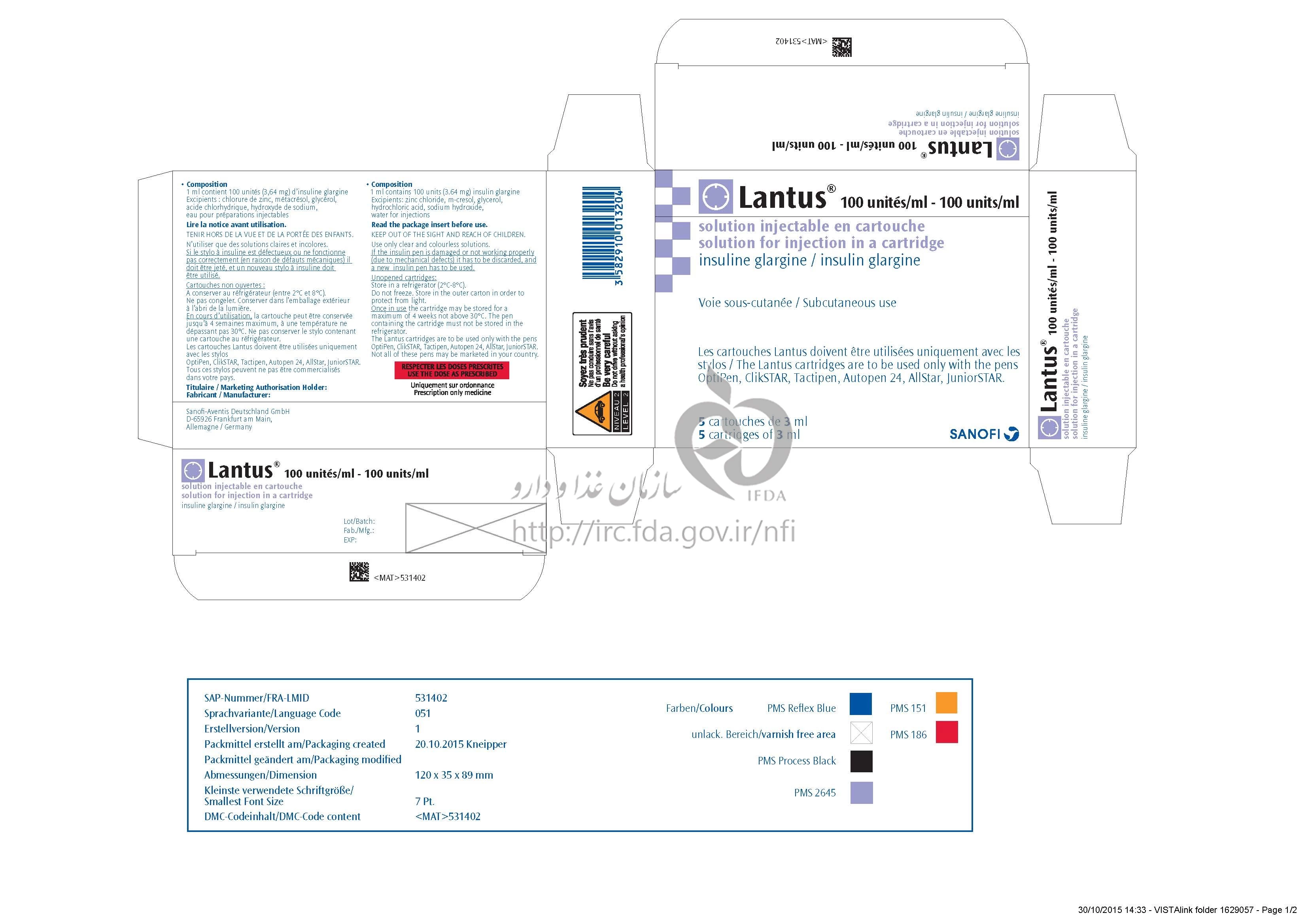 لانتوس تزریقی پرنترال 100 [iU]/1mL 3MILLILITER