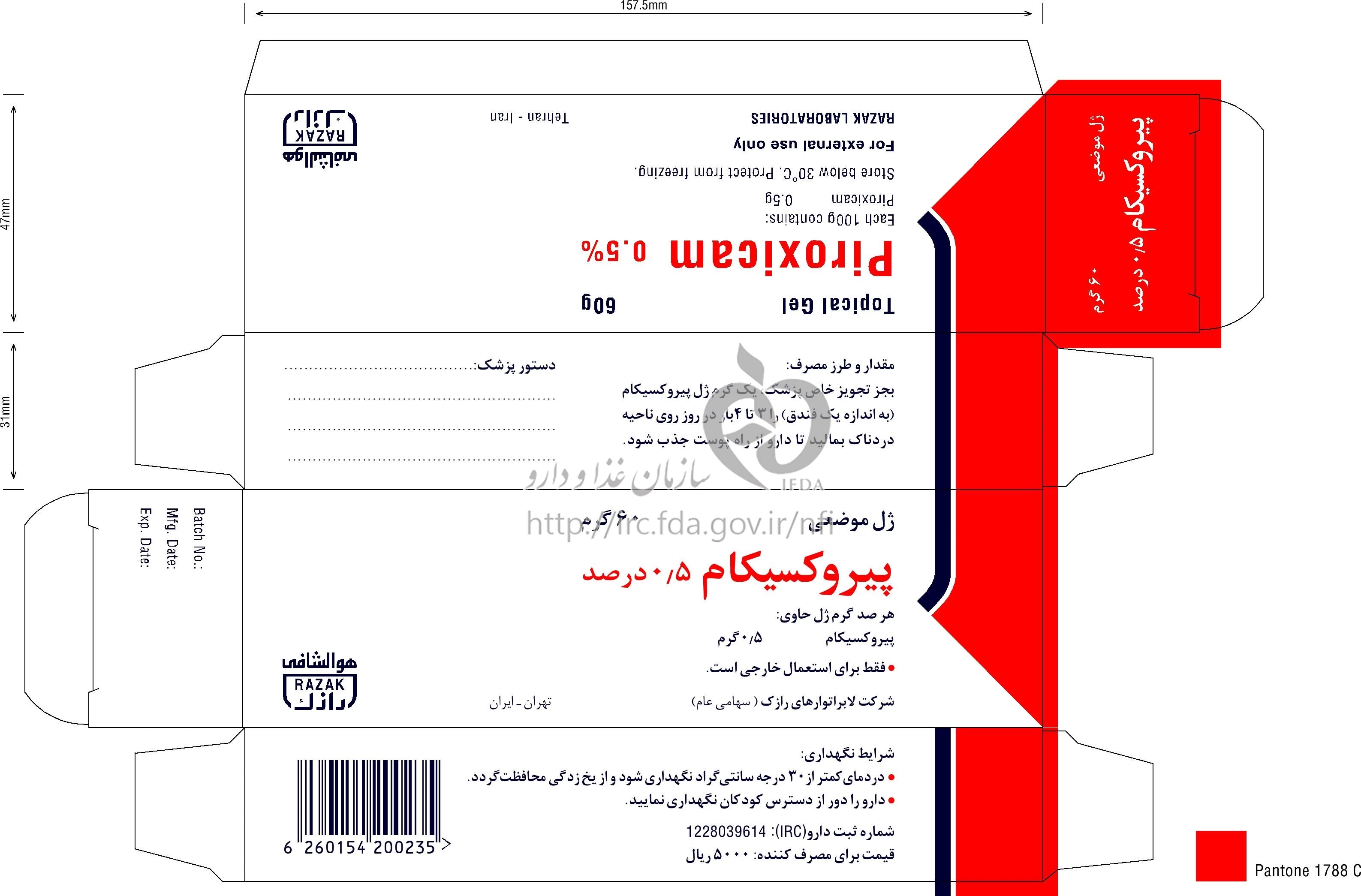 پیروکسیکام ژل موضعی 0.5 g/100g 60GRAM