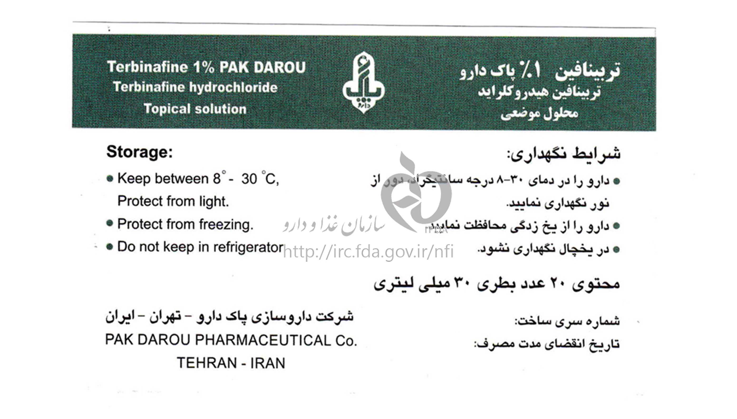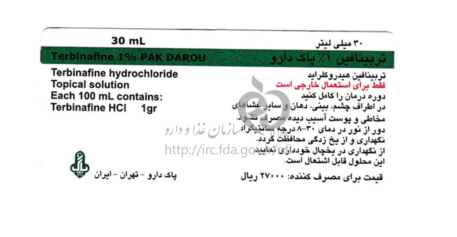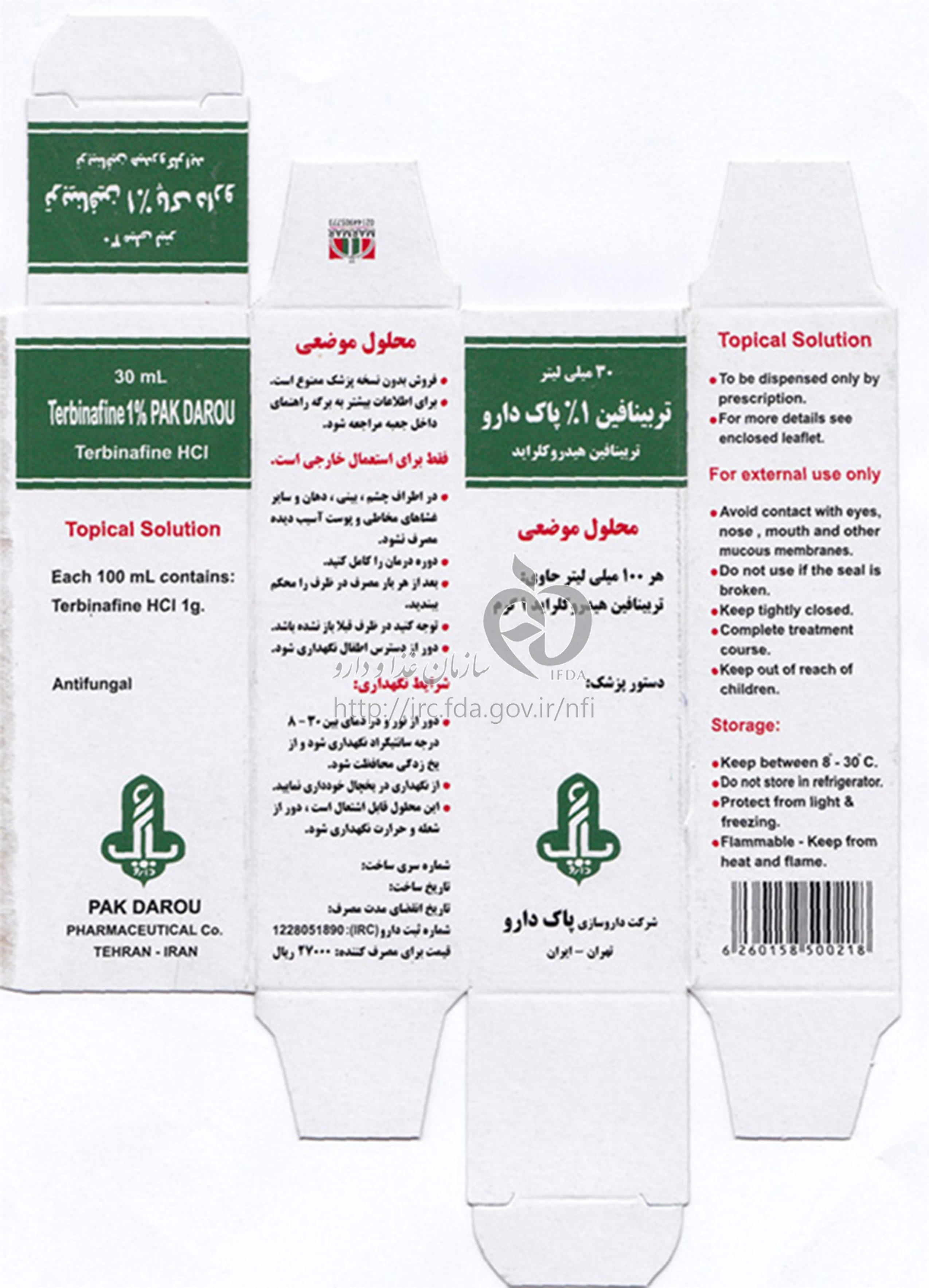 تربینافین پاک دارو محلول موضعی 1 % 30MILLILITER