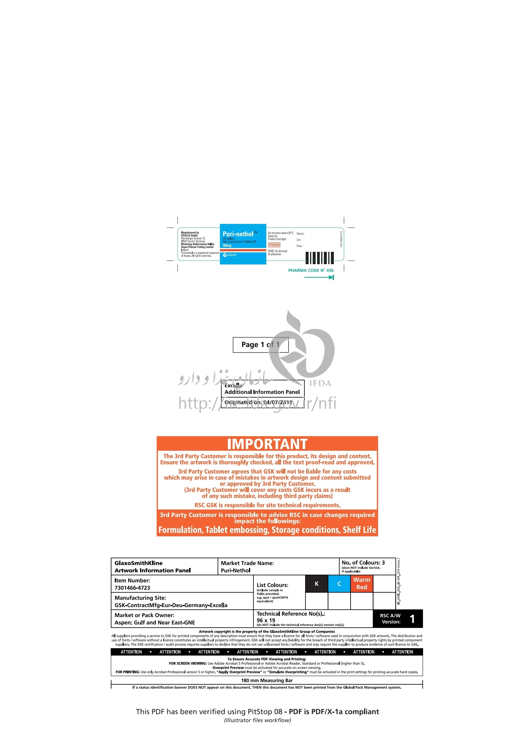 1- مصرف طولانی مدت مركاپتوپورين در بيماري‌ هاي غيرنئوپلاسمي، به علت اثرات بالقوه سرطان‎زایي باید با احتياط فراوان انجام شود.2- به محض مشاهده اولين علائم كاهش گویچه ‌هاي سفيد (به خصوص گرانولوسيتوپني) يا ترومبوسيتوپني، خونريزي و يا زردی، درمان با دارو فوراً قطع شود. پس از بازگشت تعداد لکوسیت‌ ها برای 3-2 روز و یا افزایش تعداد آن، درمان را مي توان با نصف مقدار مصرف اوليه از سر گرفت.3- كاهش گویچه هاي سفيد و ترومبوسيتوپني (معمولاً خفيف) ممكن است 6-5 روز پس از شروع درمان ايجاد و به مدت 7 روز پس از قطع مصرف دارو ادامه يابد.4- عملکرد کبد بیمار طی مصرف این دارو بررسی گردد.