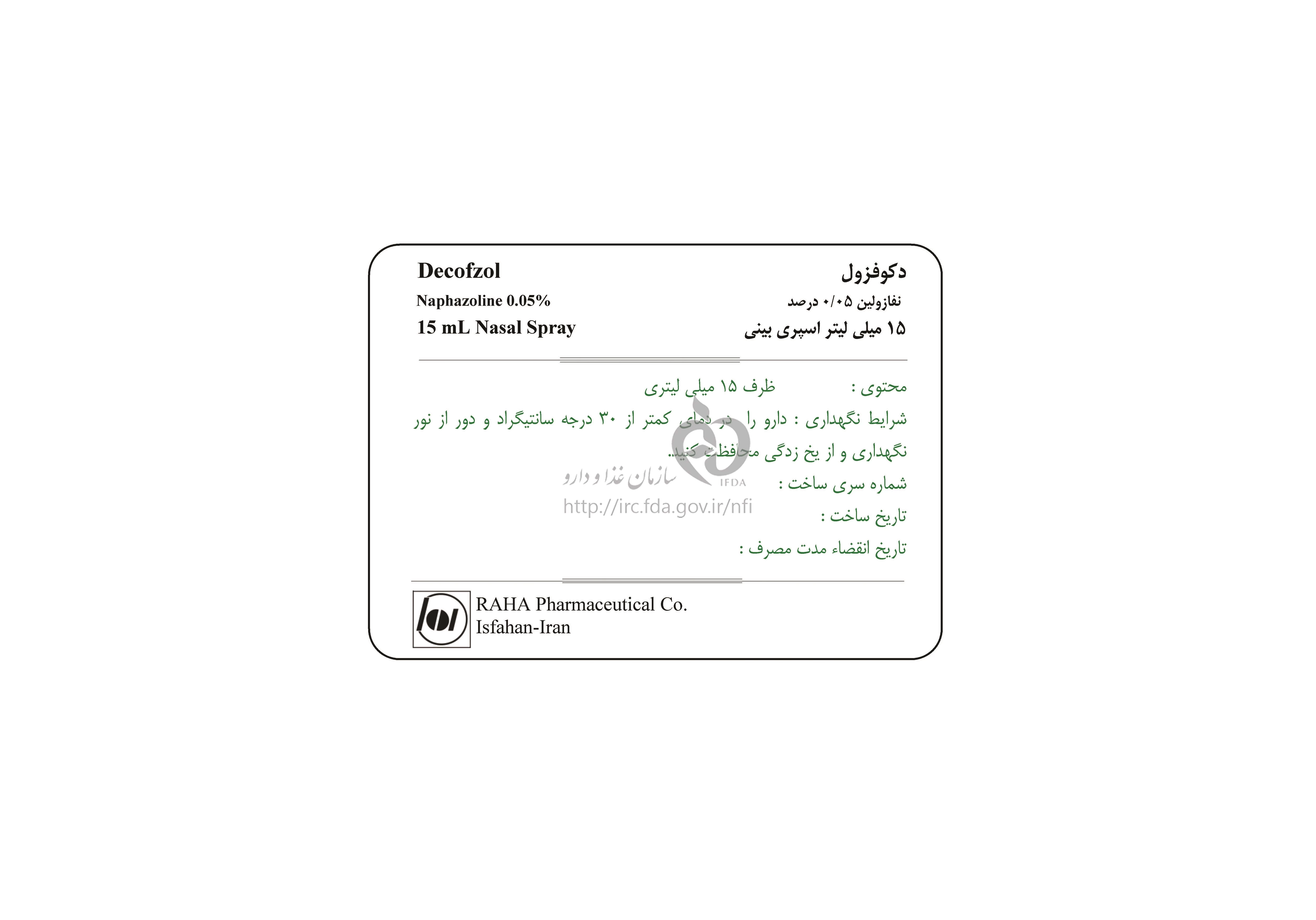 دکوفزول اسپری اسپری از راه بینی 0.05 % 15MILLILITER