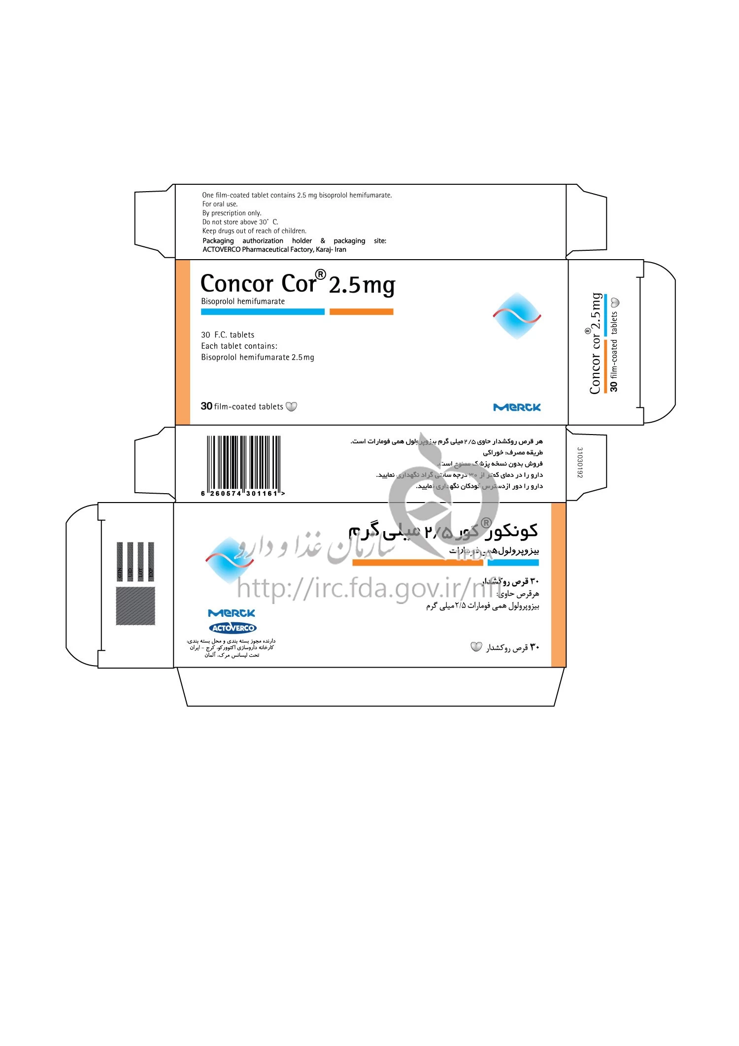 موارد مصرف ، عوارض جانبی ، مصرف بارداری و تداخلات دارویی کنکور کور قرص خوراکی 2.5 mg