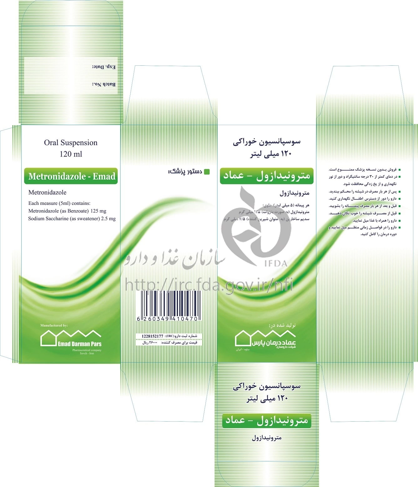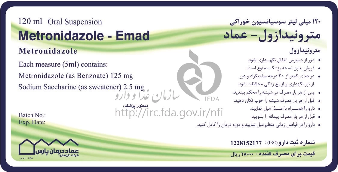 مترونیدازول - عماد سوسپانسیون خوراکی 125 mg/5mL 120MILLILITER