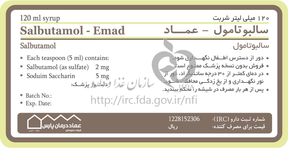 سالبوتامول - عماد شربت خوراکی 2 mg/5mL 120MILLILITER