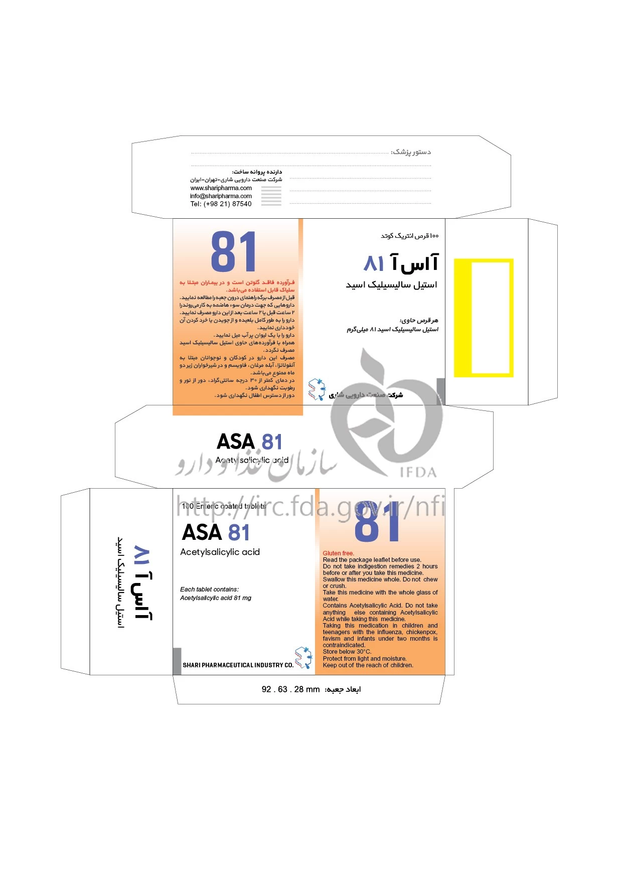 آ اس آ قرص انتریک کوتد خوراکی 81 mg
