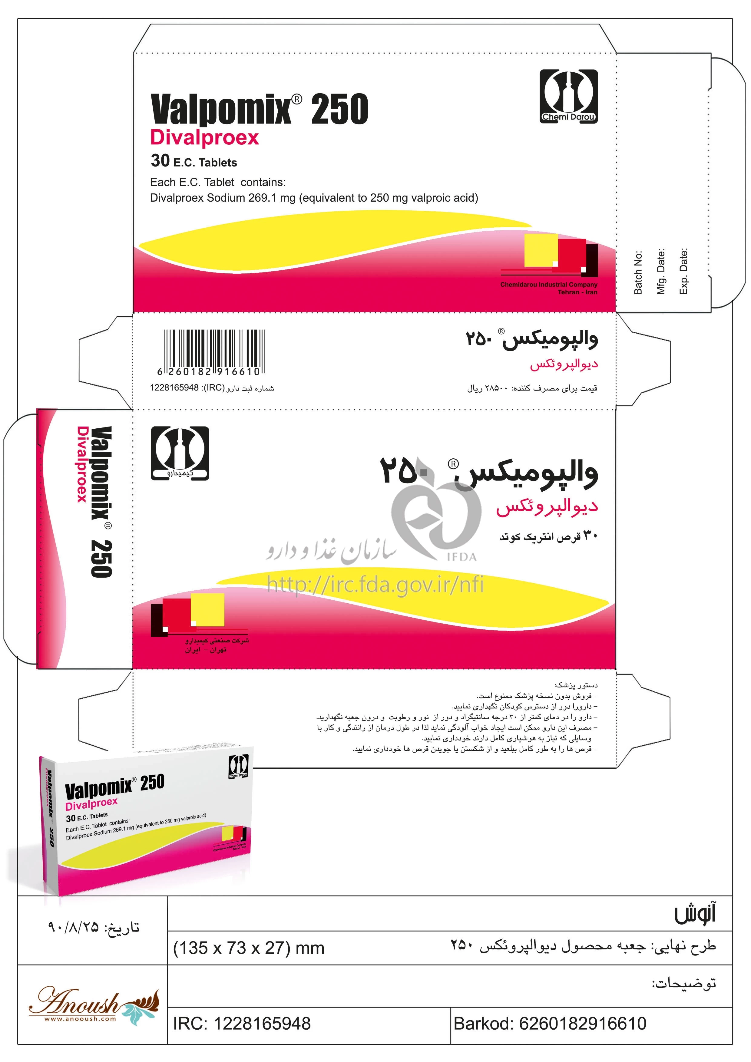 دکترها والپومیکس قرص انتریک کوتد خوراکی 250 mg