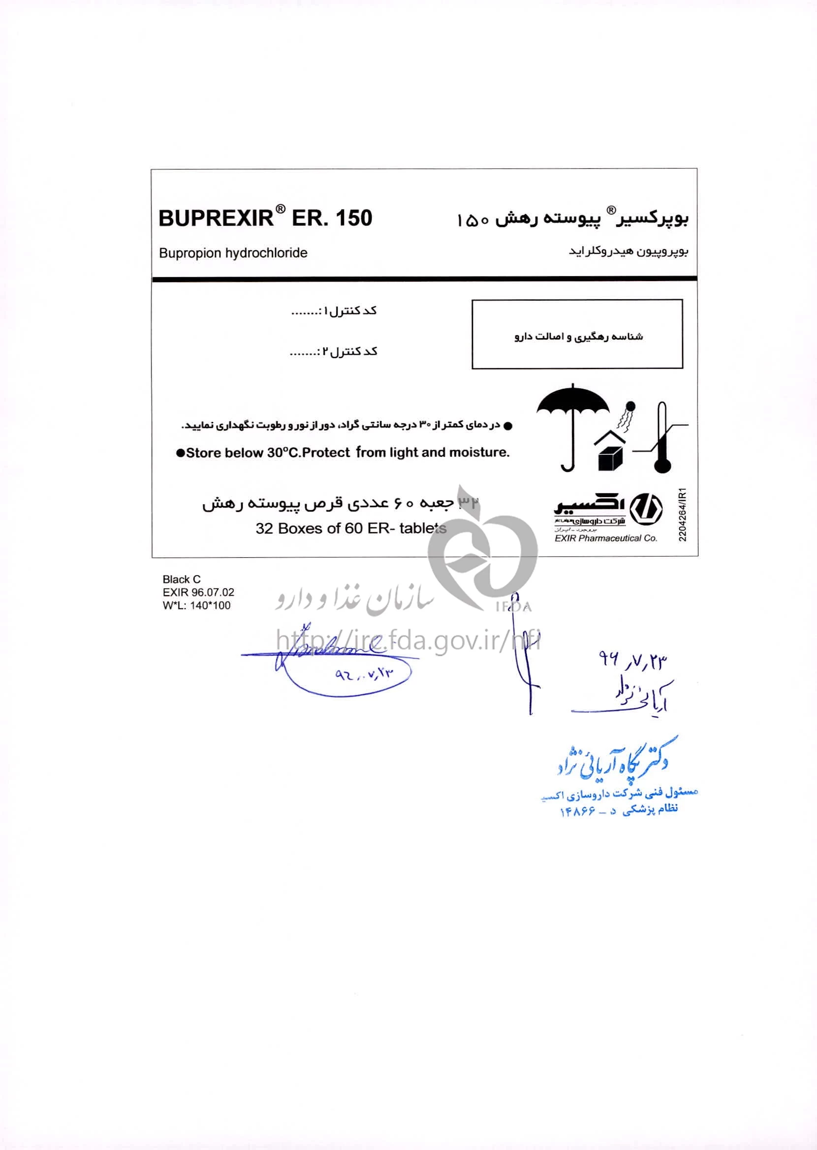 دکترها بوپرکسیر قرص پیوسته رهش خوراکی 150 mg
