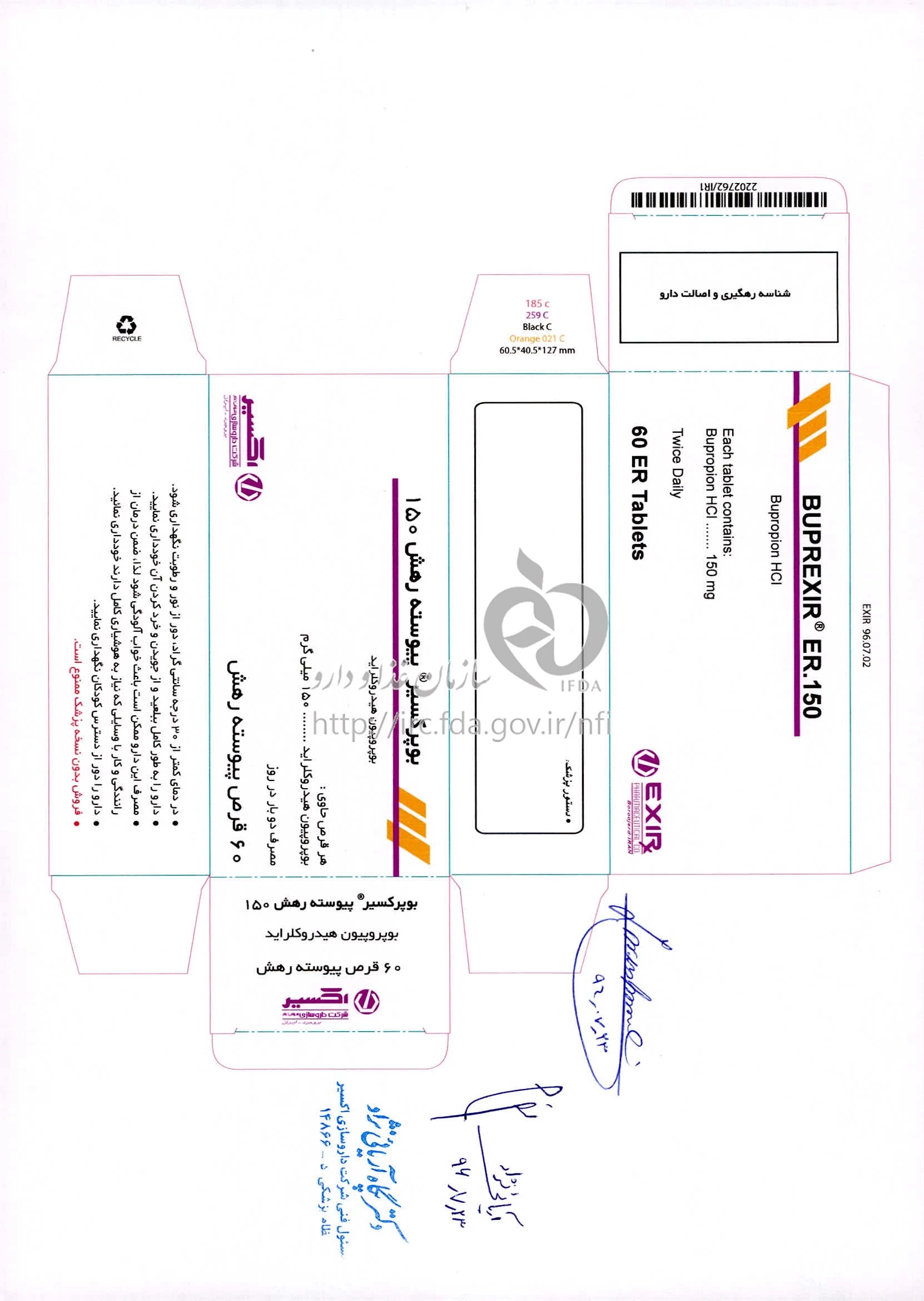 بوپرکسیر قرص پیوسته رهش خوراکی 150 mg